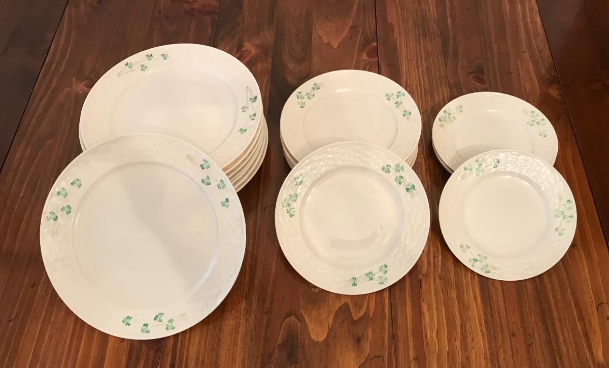 BELLEEK CLASSIC Shamrock 18 Piece Plate Set .