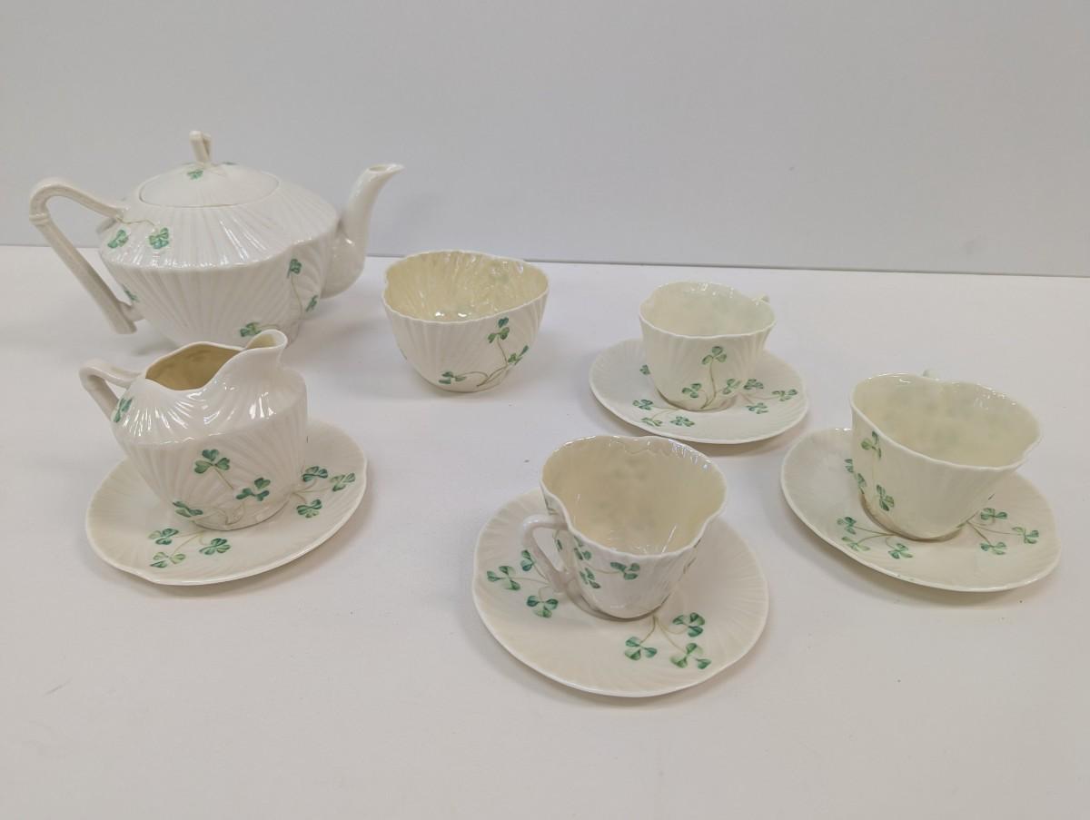 Belleek Fermanagh Ireland Shamrock Tea Set Different Maker Marks