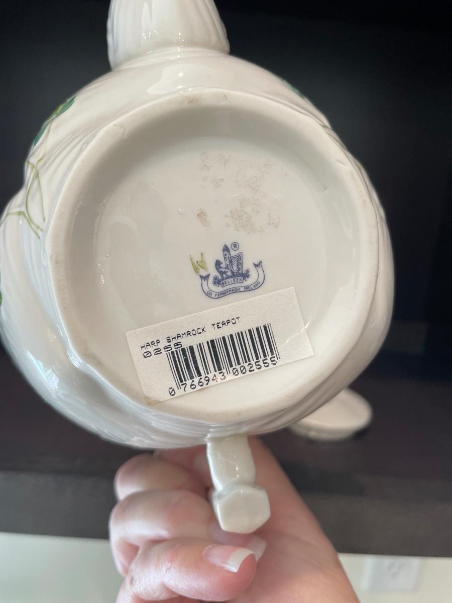 Belleek Harp Shamrock Teapot Ireland