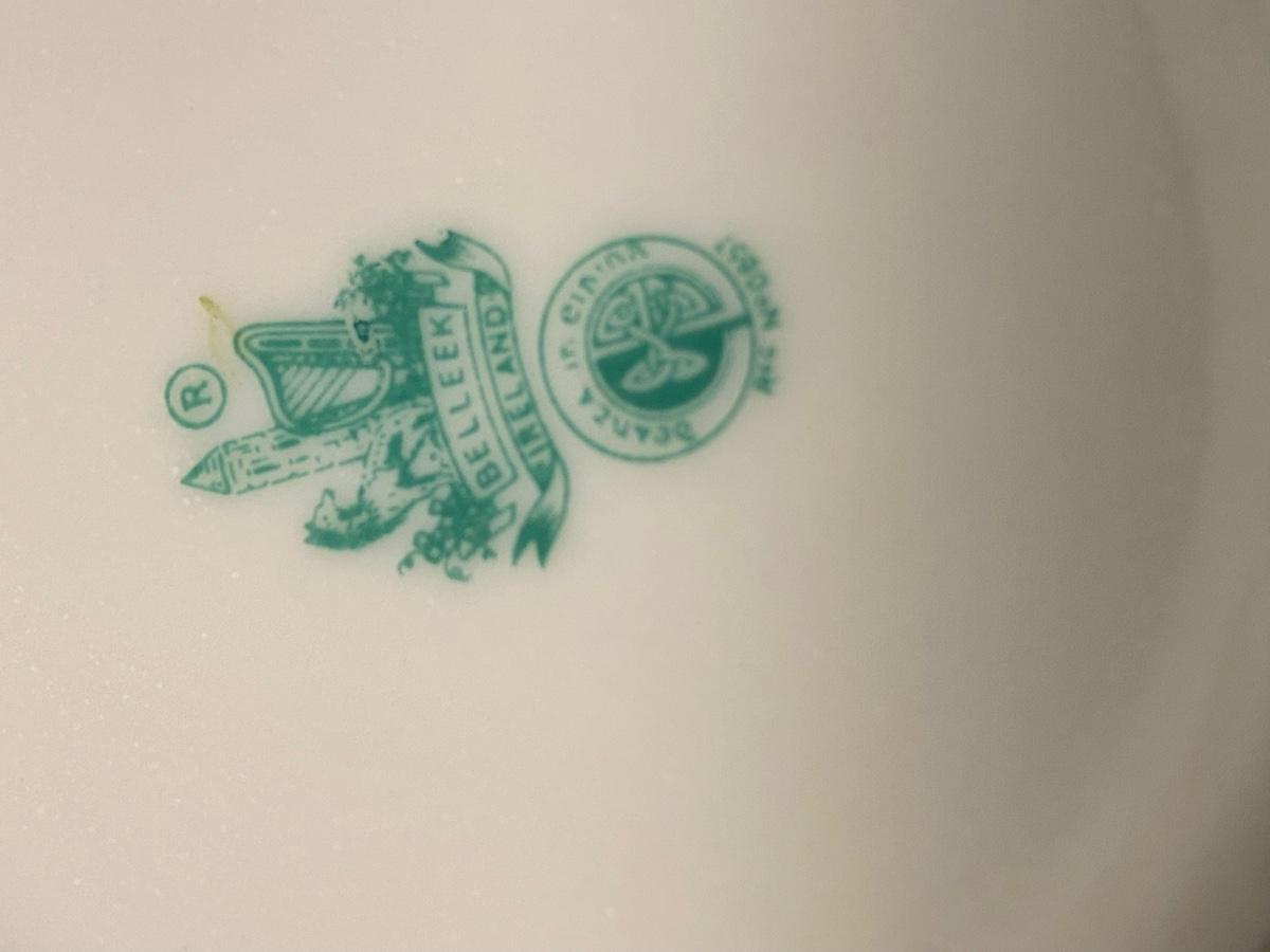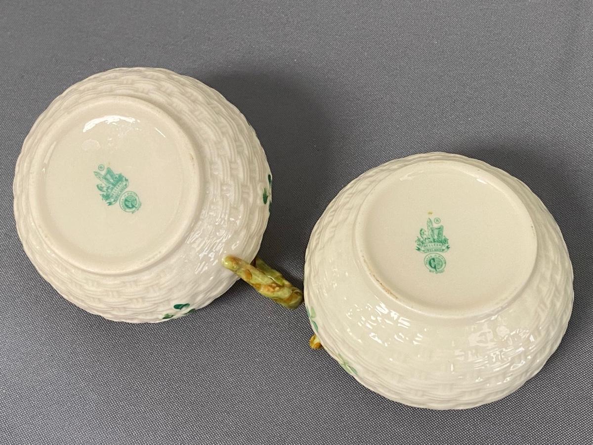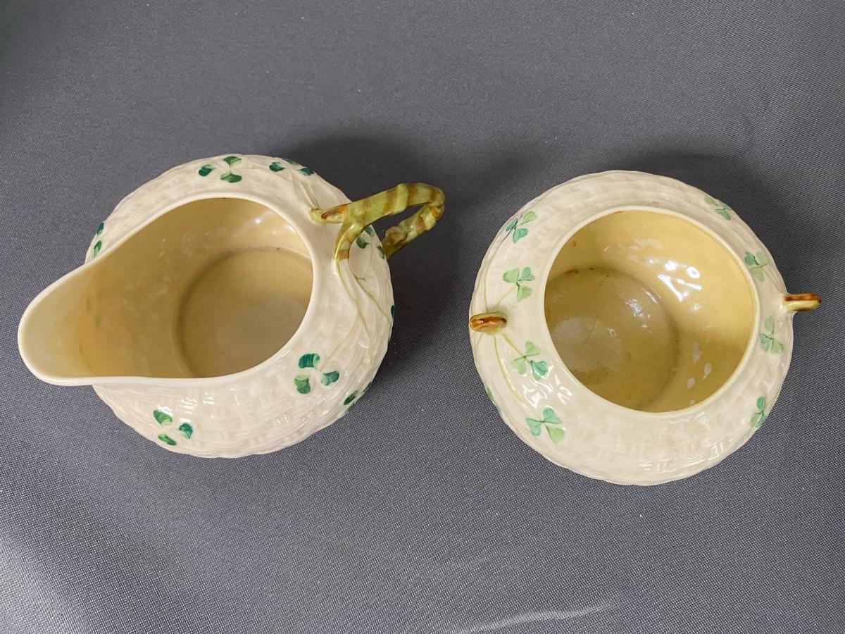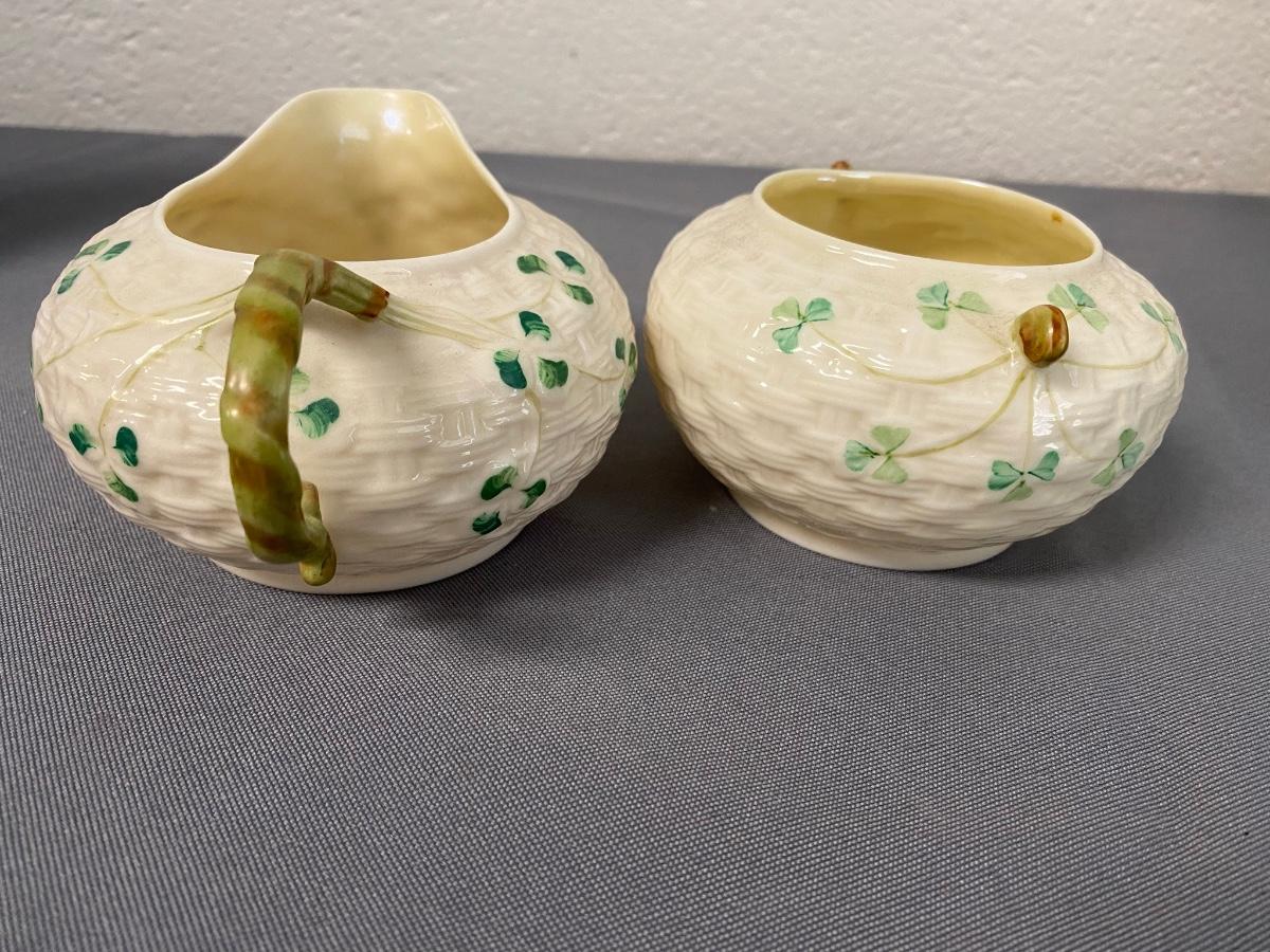 Belleek Ireland Shamrock Basket Weave Sugar & Creamer