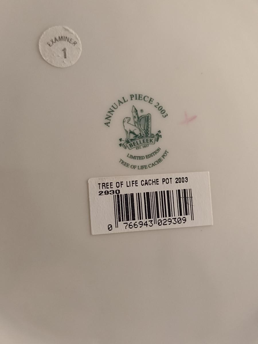 Belleek Irish Porcelain Tree of Life Cache Pot- Annual Piece 2003- Approx 8 1/4" Tall. 8 1/4" in Diameter