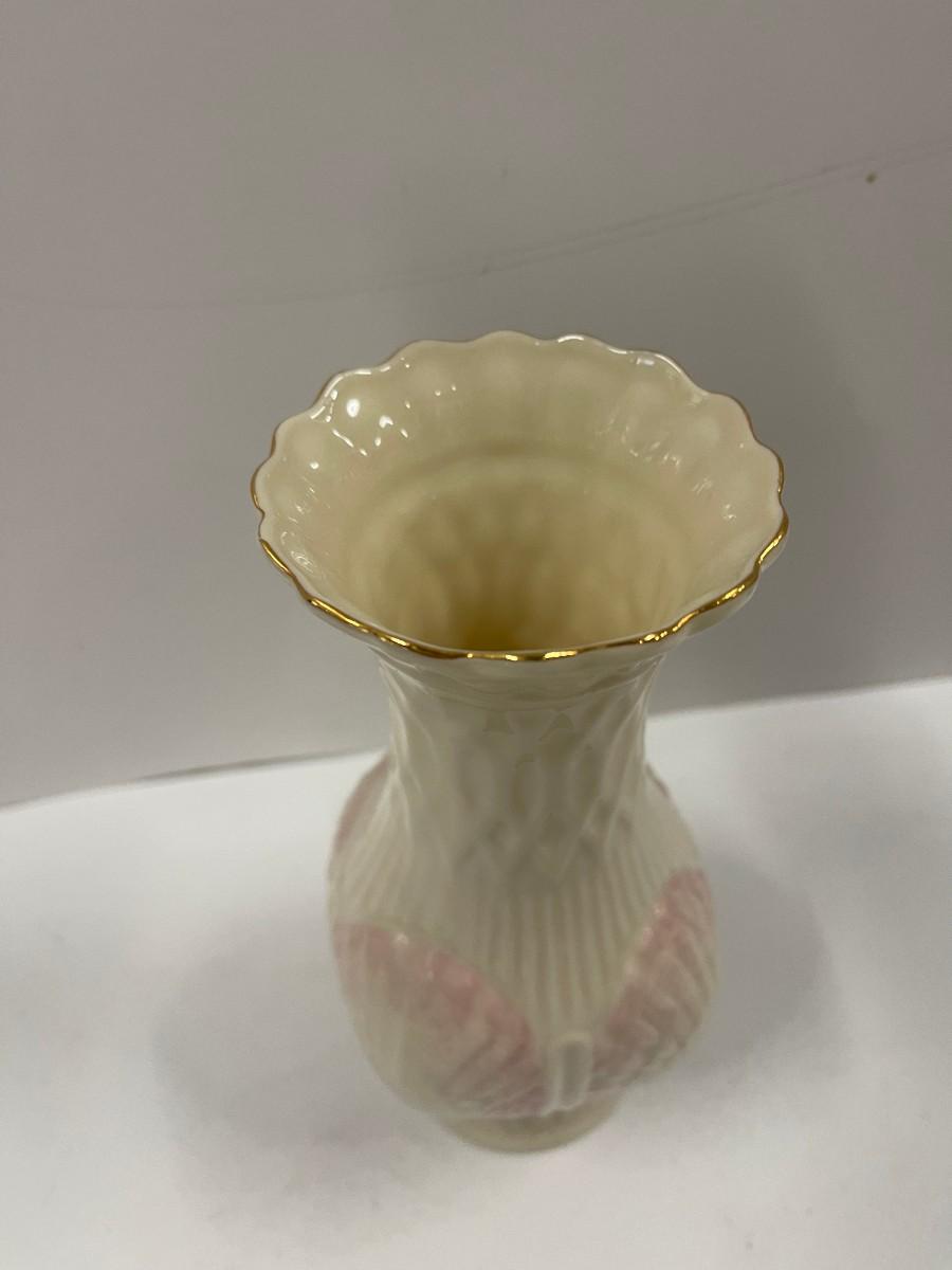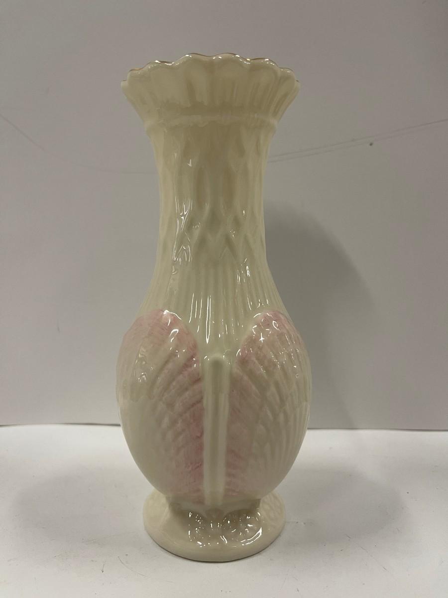 Belleek porcelain shell vase. 7th mark (1980-1993). Excellent condition. 8"
