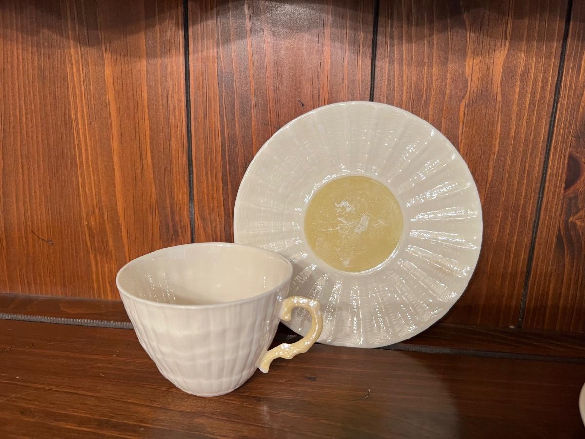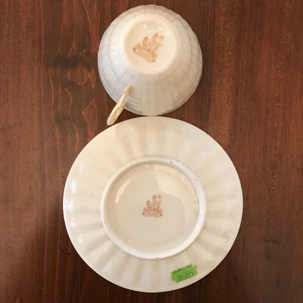 Neptune Yellow by BELLEEK POTTERY (IRELAND) teacup and saucer set of 3.
