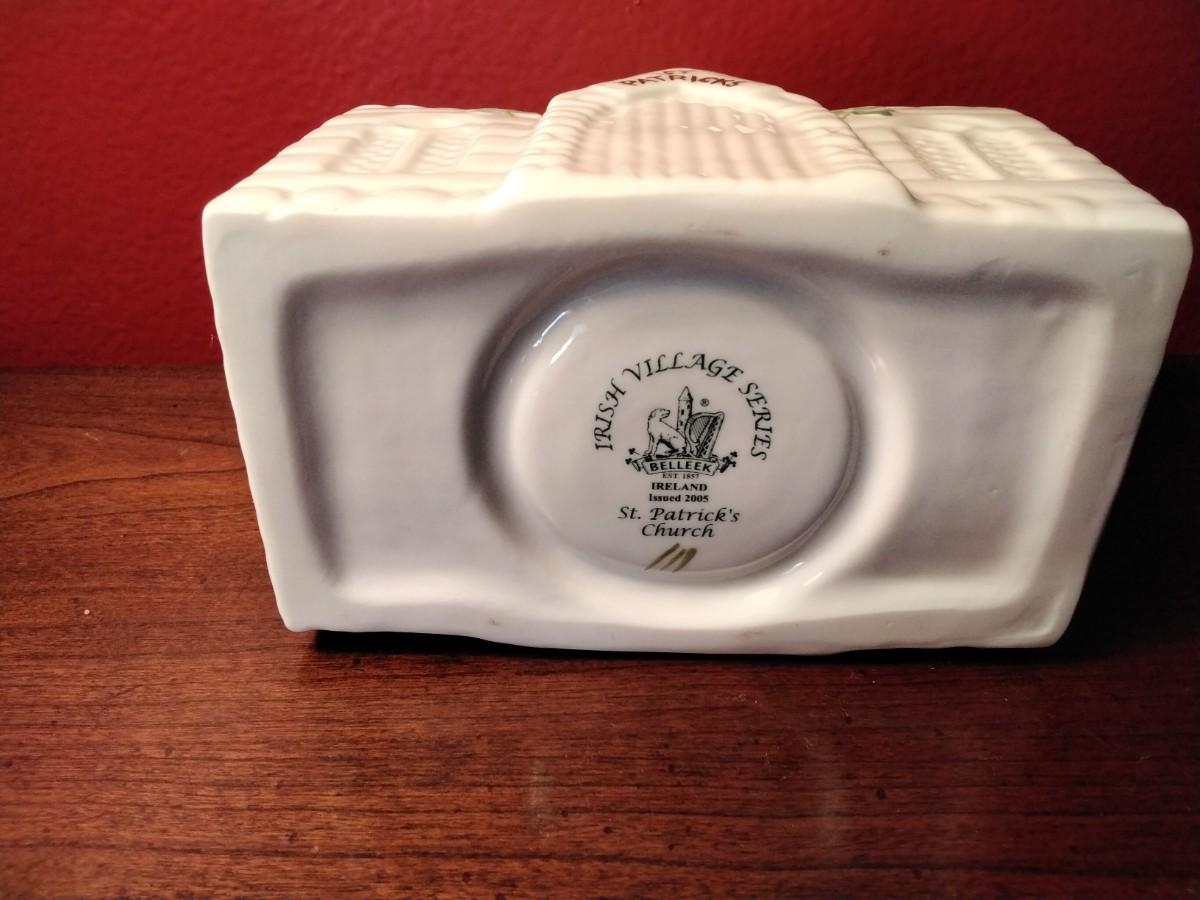 This is the porcelain Belleek St. Patrick's Church from the Irish Village Series.A tea light candle holder.New, without the original box.Unused.5.5 inches tall, 4.75 inches wide, 2.75 inches deep.