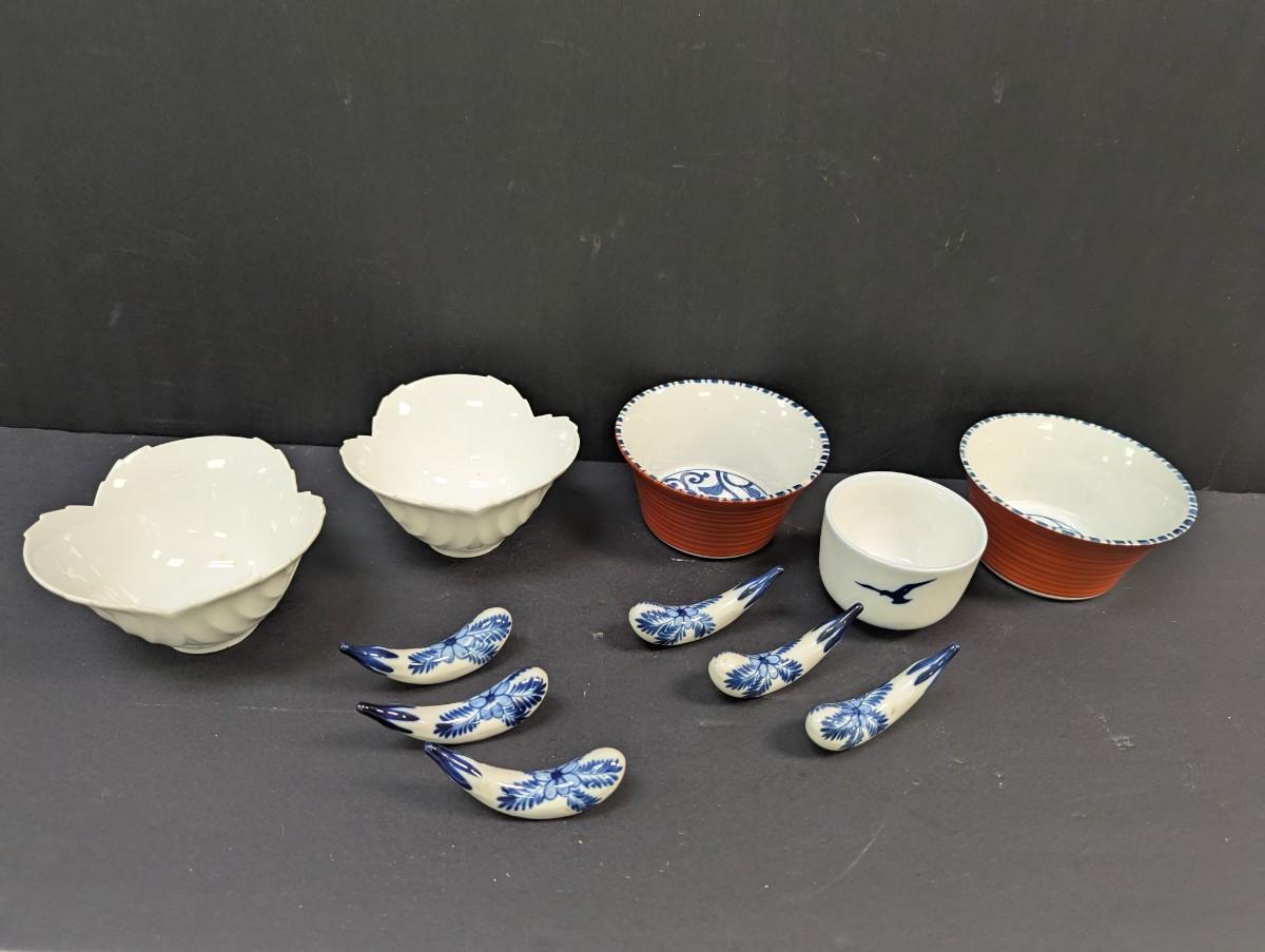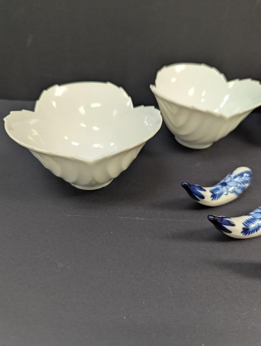 Belleek Style White Glazed Bowls - Porcelain Chopstick Holders