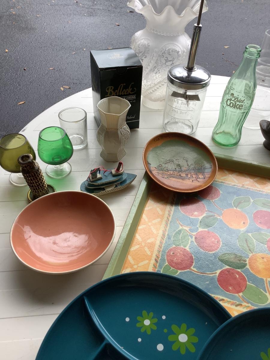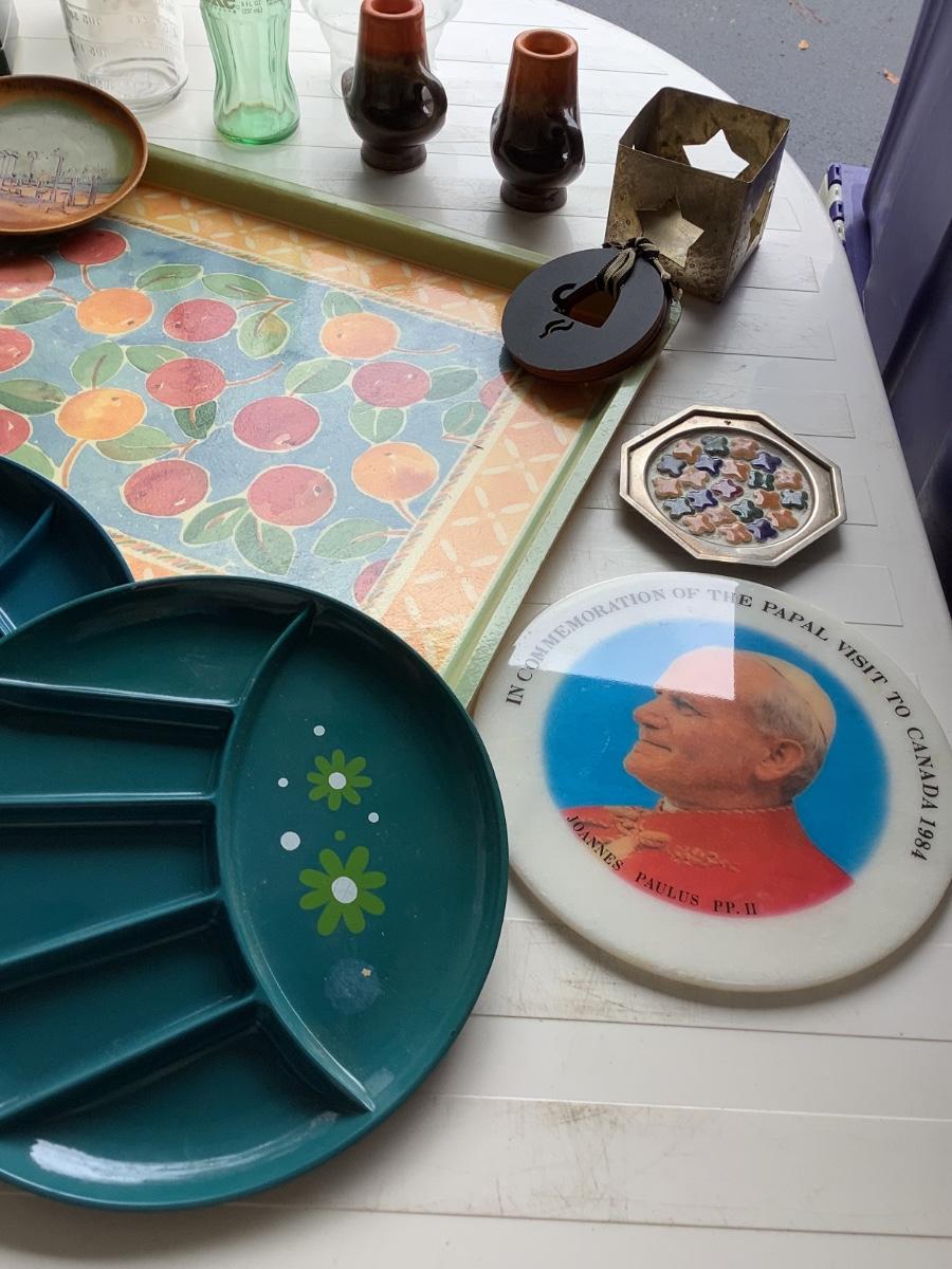 Belleek vase, Pope, tray, pottery, glassware- 22 pieces