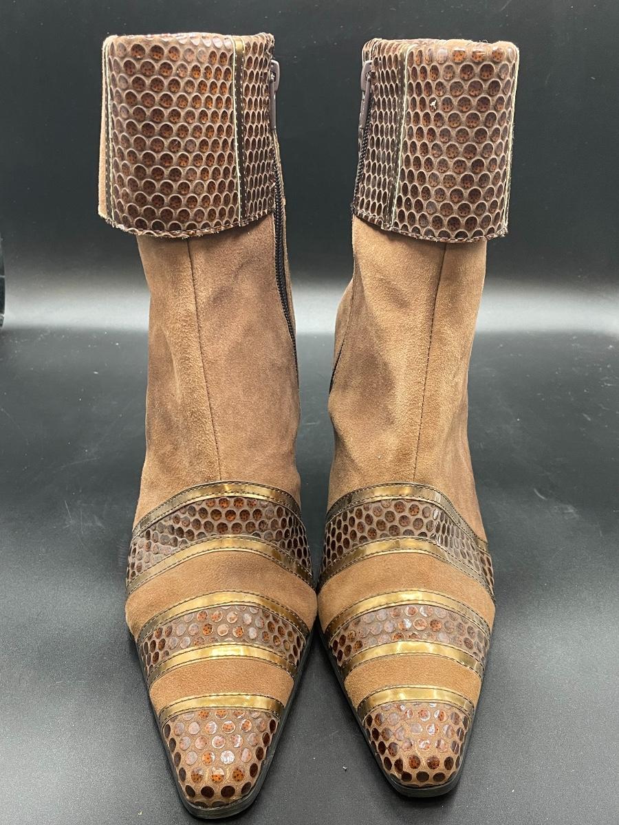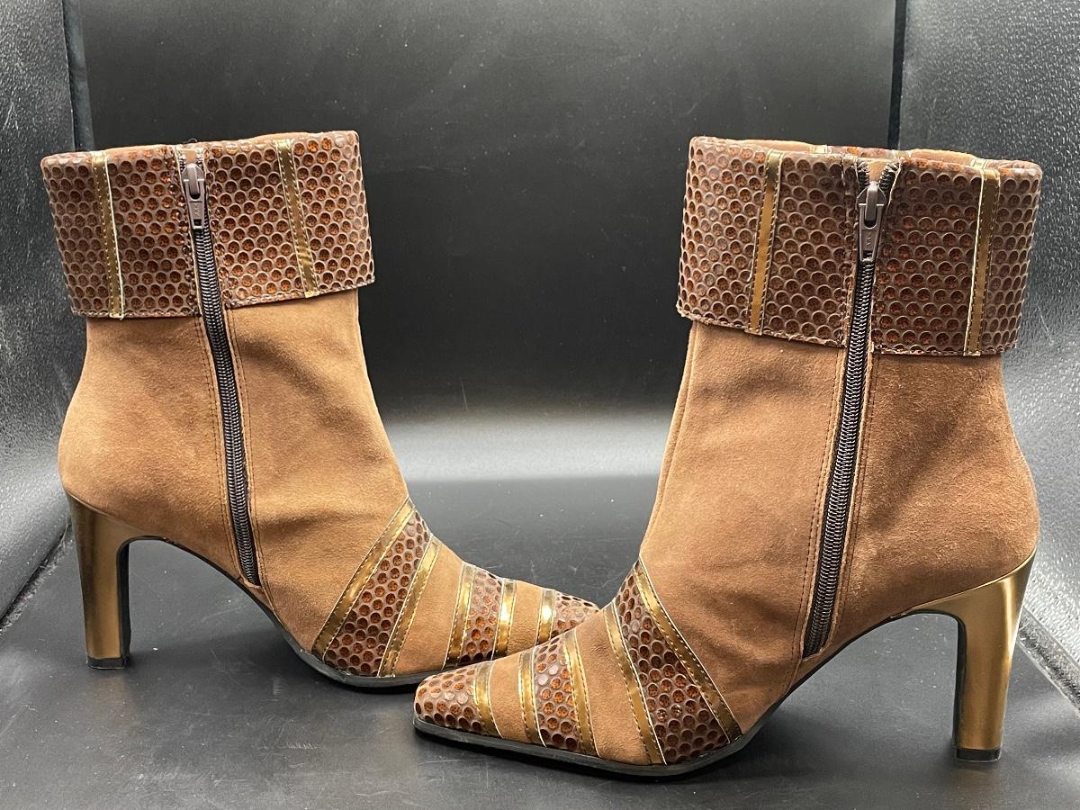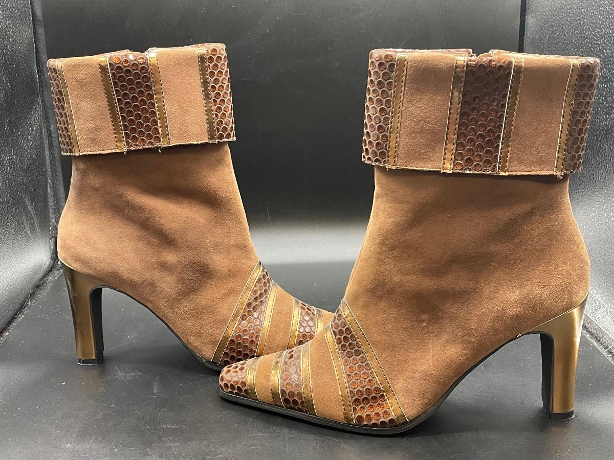 These high heel boots are in great condition. They come in a size 8 1/2 W. They look like they have hardly been worn and come with tissue inside to keep them standing straight up. These boots were made in China.