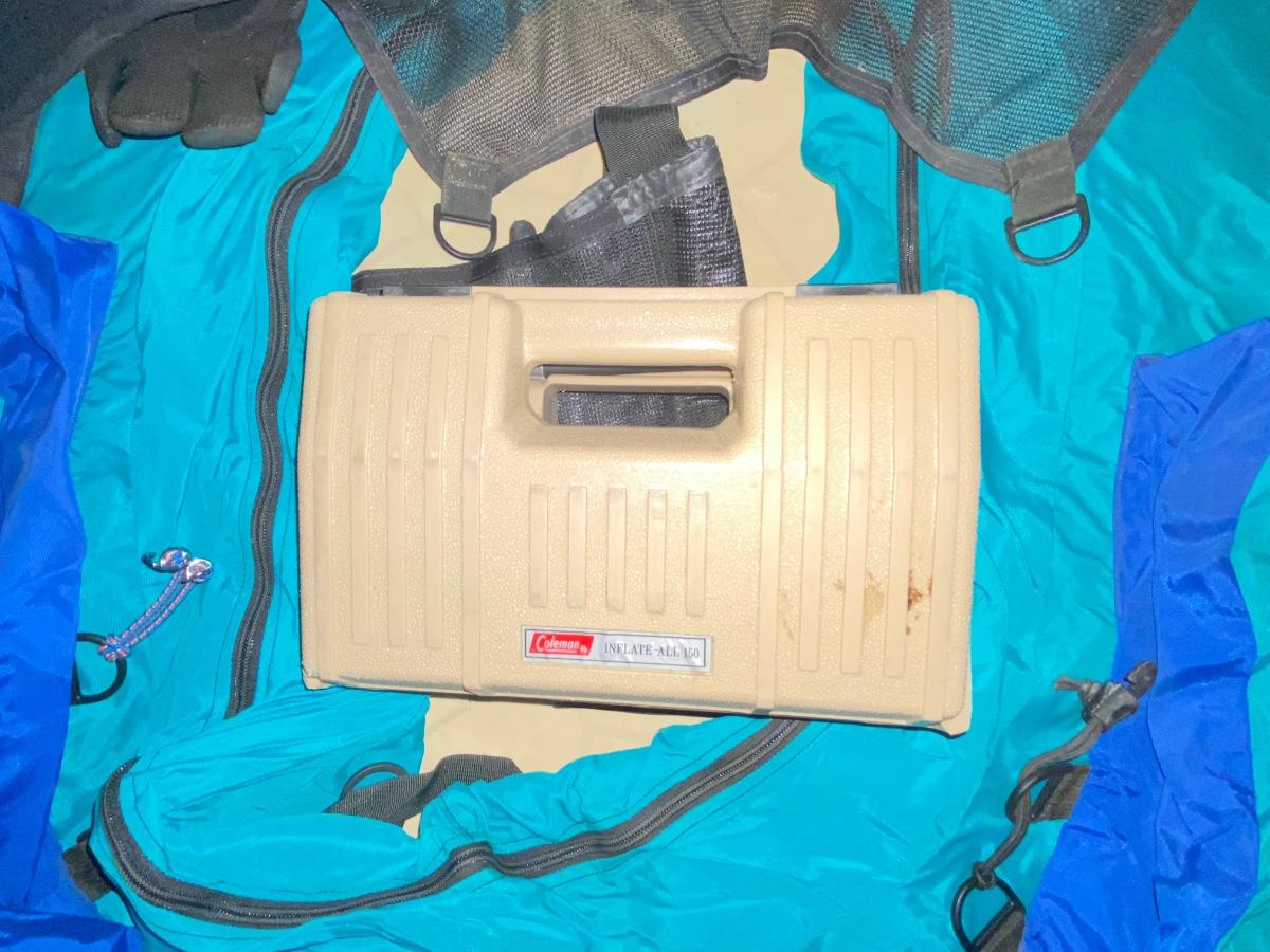 BELLY BOAT WITH COLEMAN INSTA-FLATE ALL 12V PUMP