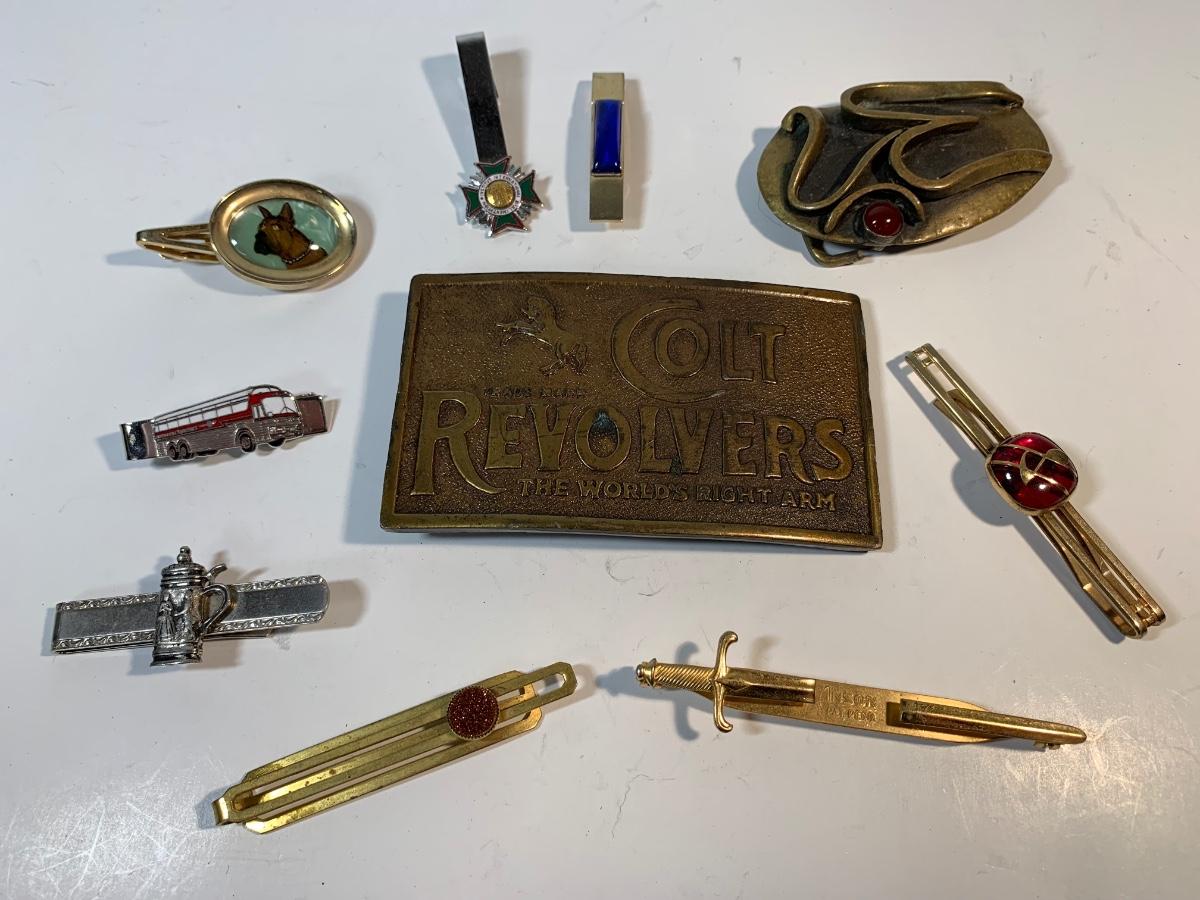 Belt buckles and tie clips all great quality