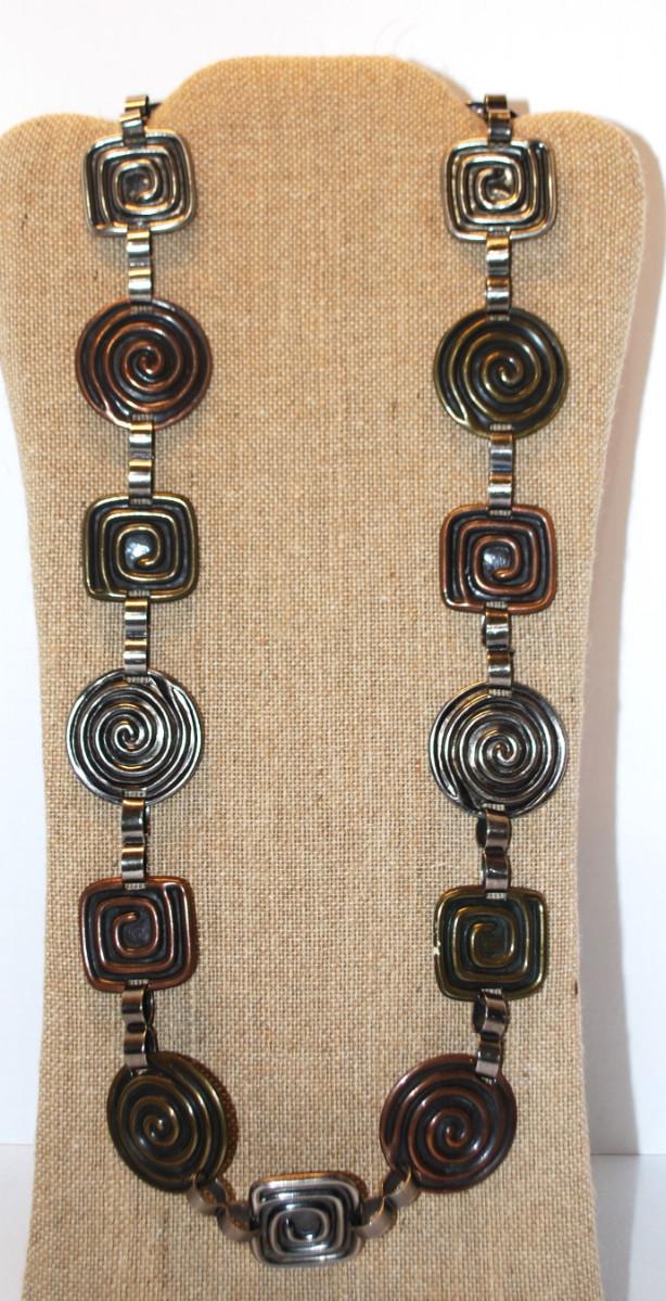 Belt Or Necklace with Swirls, Squares and Circles 32" - 35" L