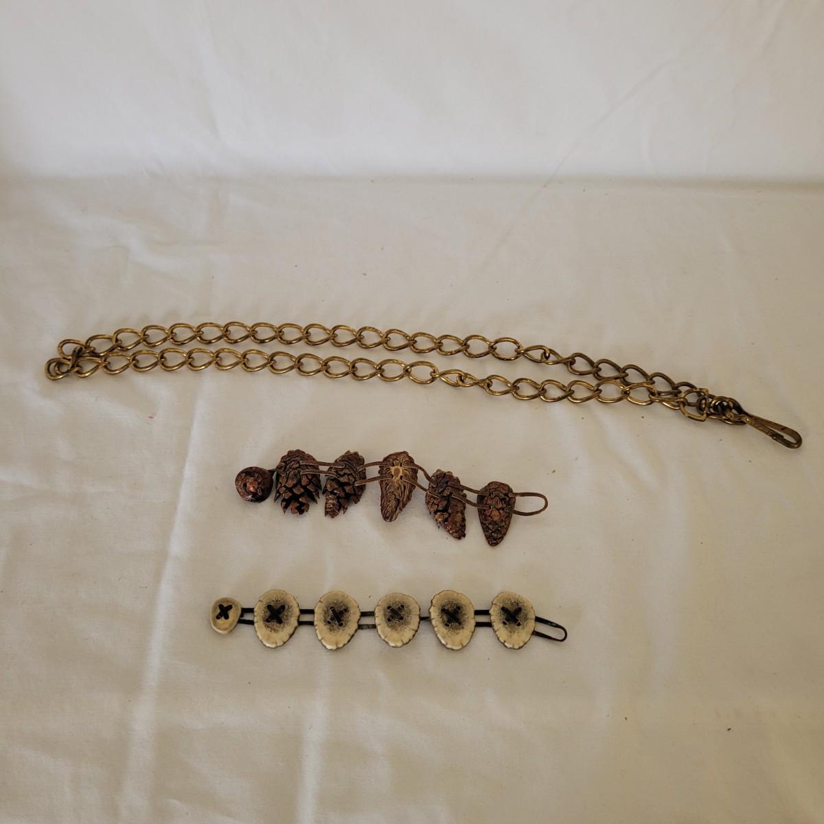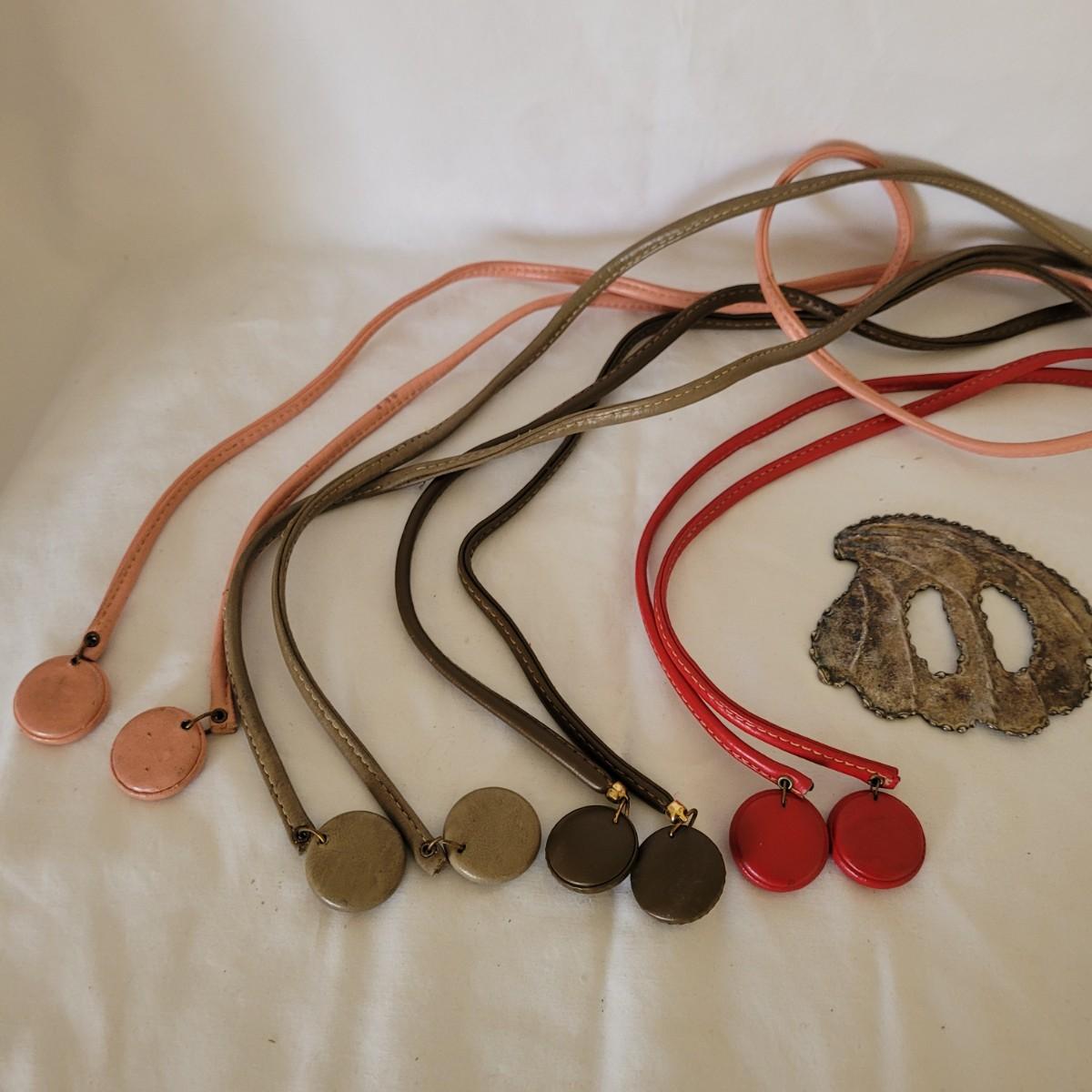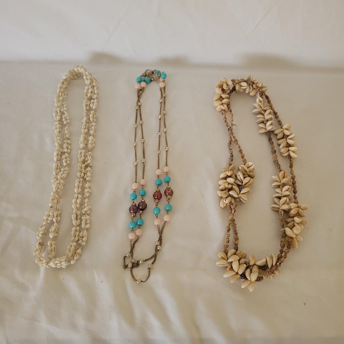 This collection of belts and necklaces includes cowboy style bolo ties, suede belts, shell necklaces, wooden bead necklaces and much more. Note that many necklaces are photographed doubled up, so are much longer. Red beaded necklace measures approximately 27” in total length. Shipping available.