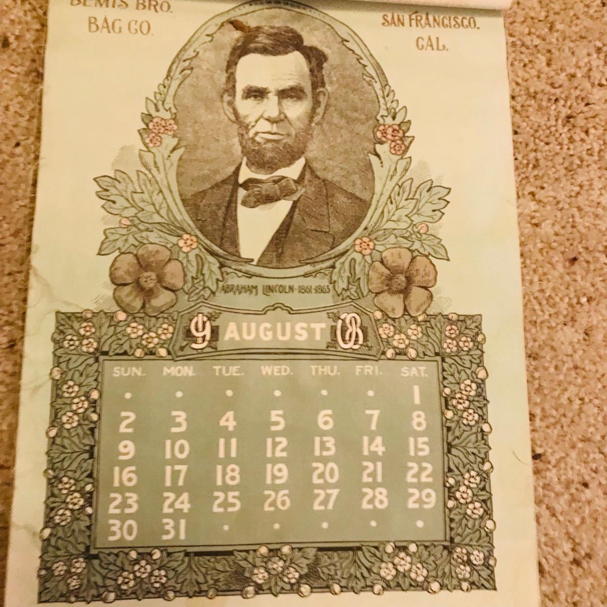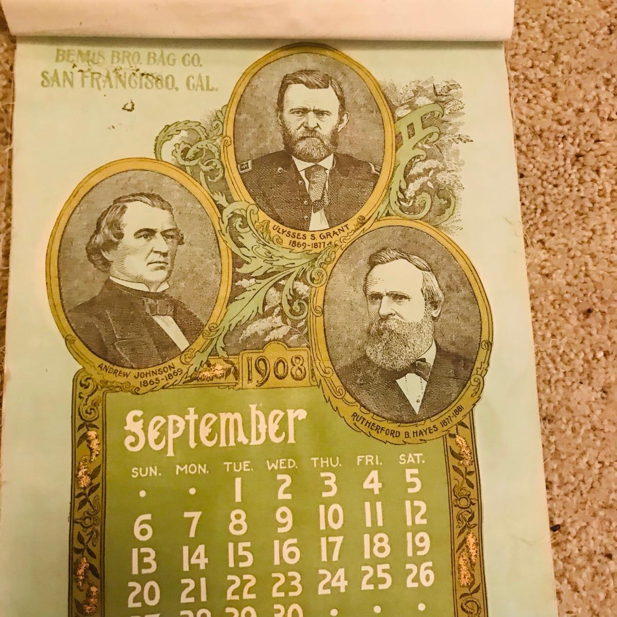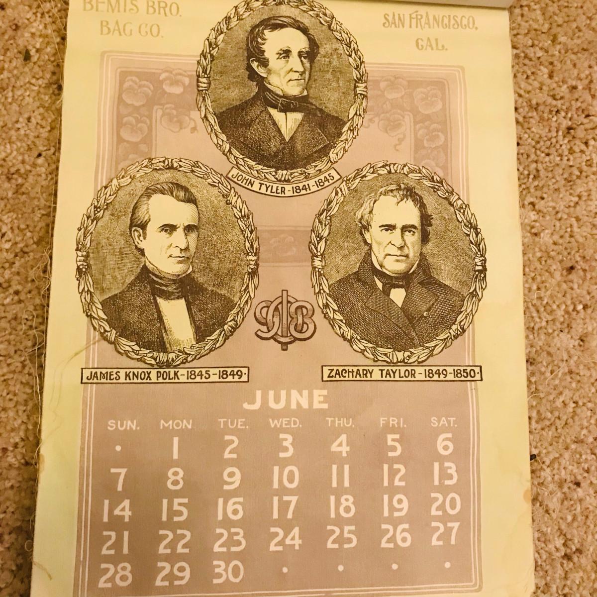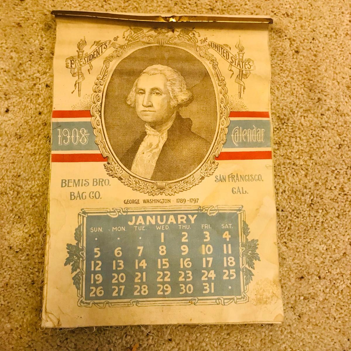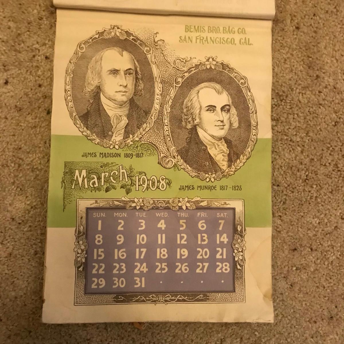 Bemis Bro.'s Bag Co. 1908 Cloth Presidents Calendar