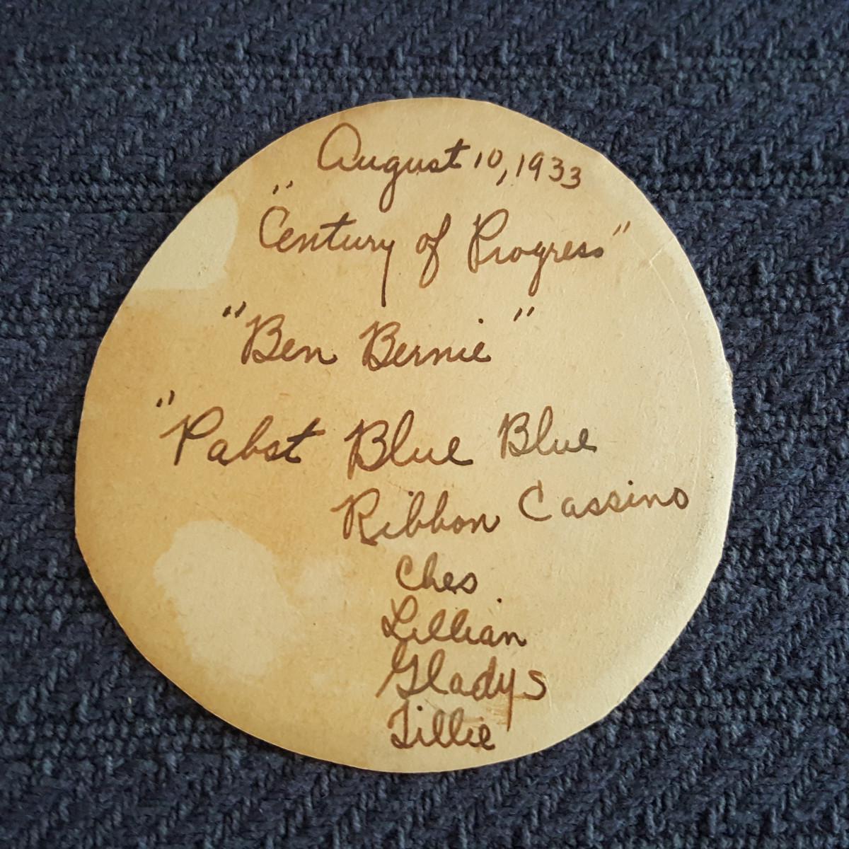This auction lot is for a unique souvenir of the 1933 World's Fair. Photo is ephemera of the musical star - Ben Bernie - of the Pabst Blue Ribbon Casino gathered while at the Fair on August 10, 1933. Also includes internet sheet information on Ben Bernie - the Old Maestro from the Jazz Age.