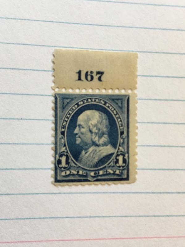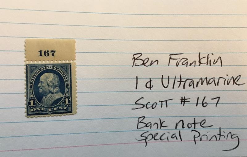 BEN FRANKLIN Ultramarine 1 Cent Bank Note Unused Stamp Scott #167