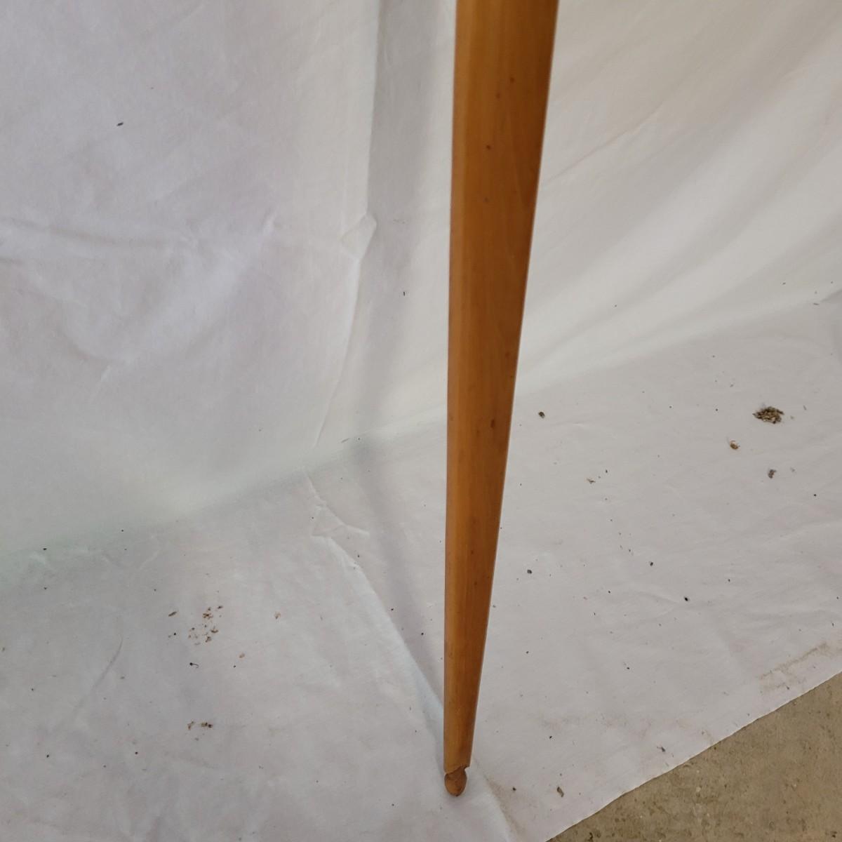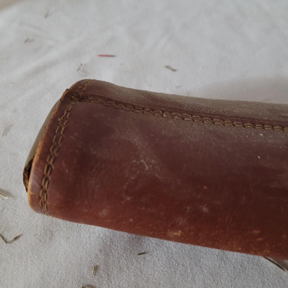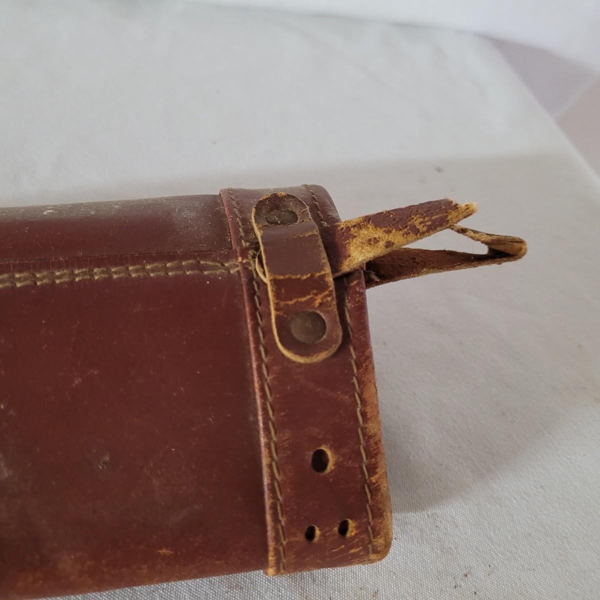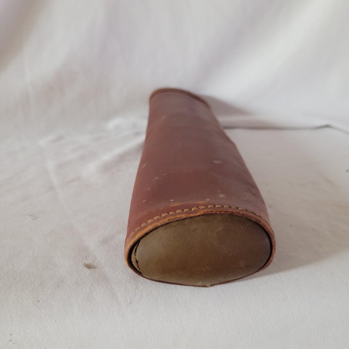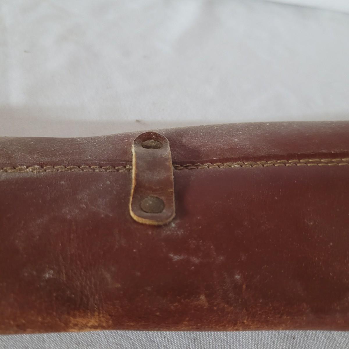 Two wooden long bows, longer one confirmed Ben Pearson with logo measures approximately 67", shorter one with no logo but engraved "30" measures approximately 60". Arrows very used, many with broken tips (see photos). Rack in good condition, quiver in poor condition with large tear at bottom and broken loop. Shipping available.