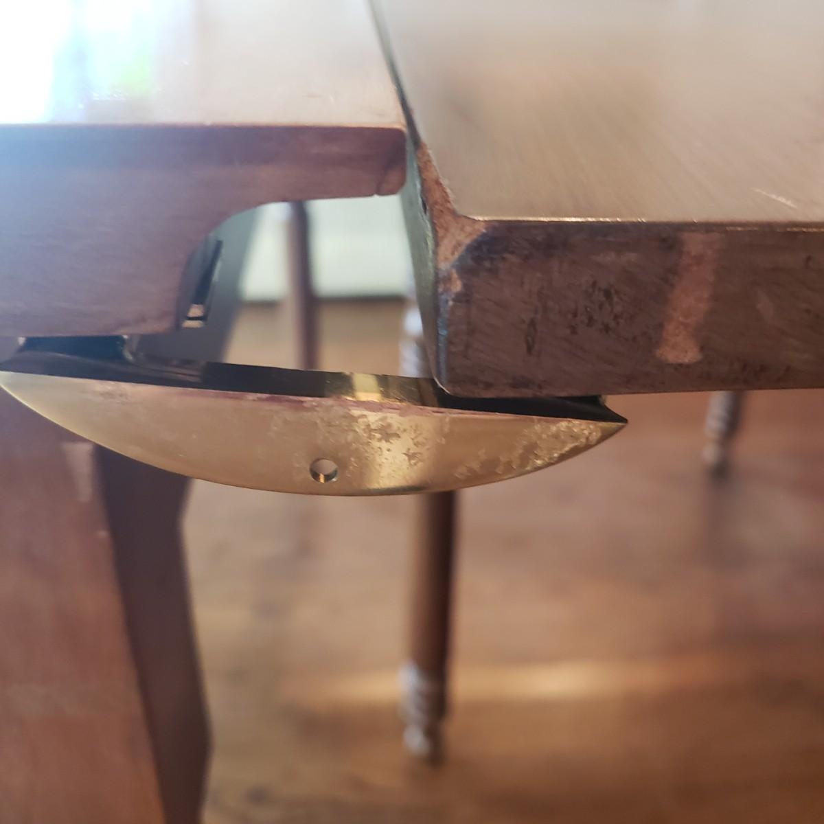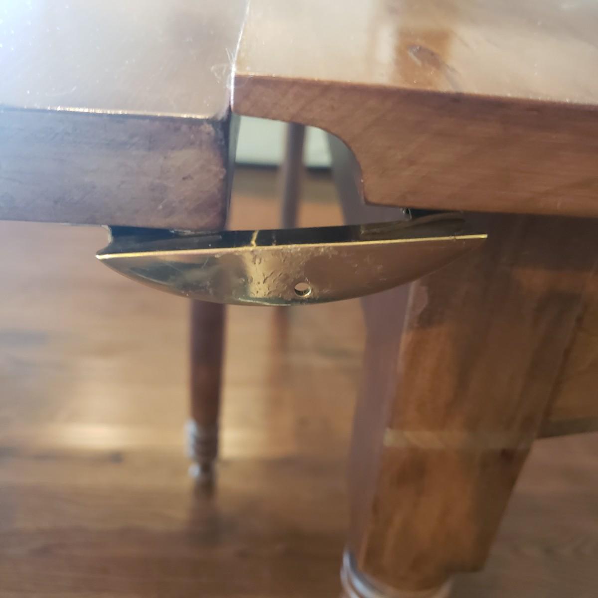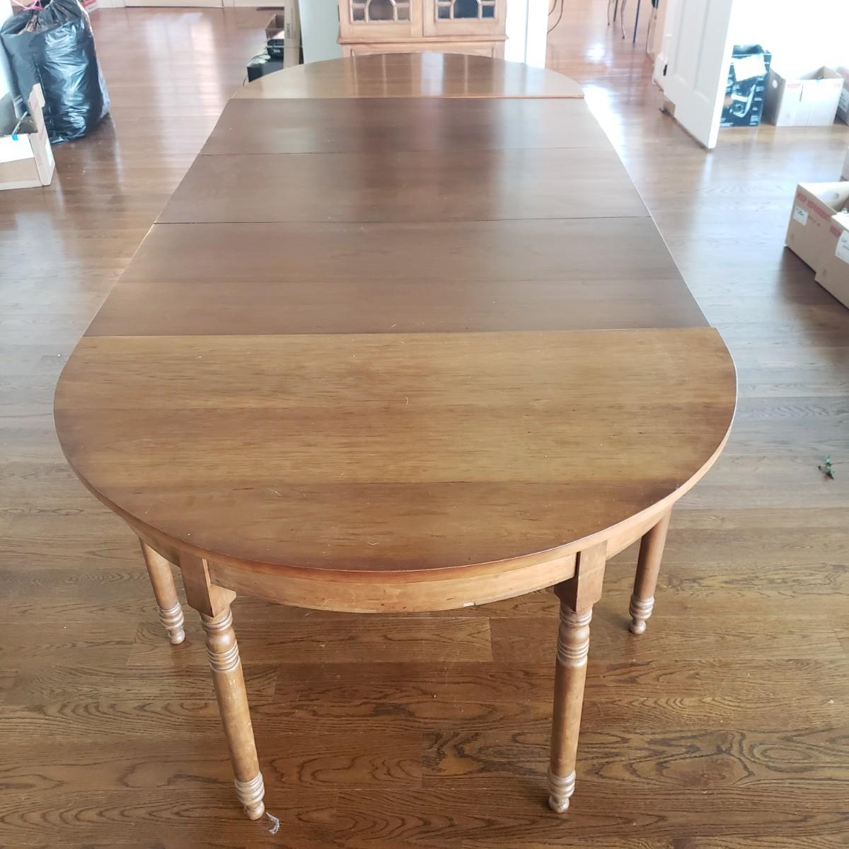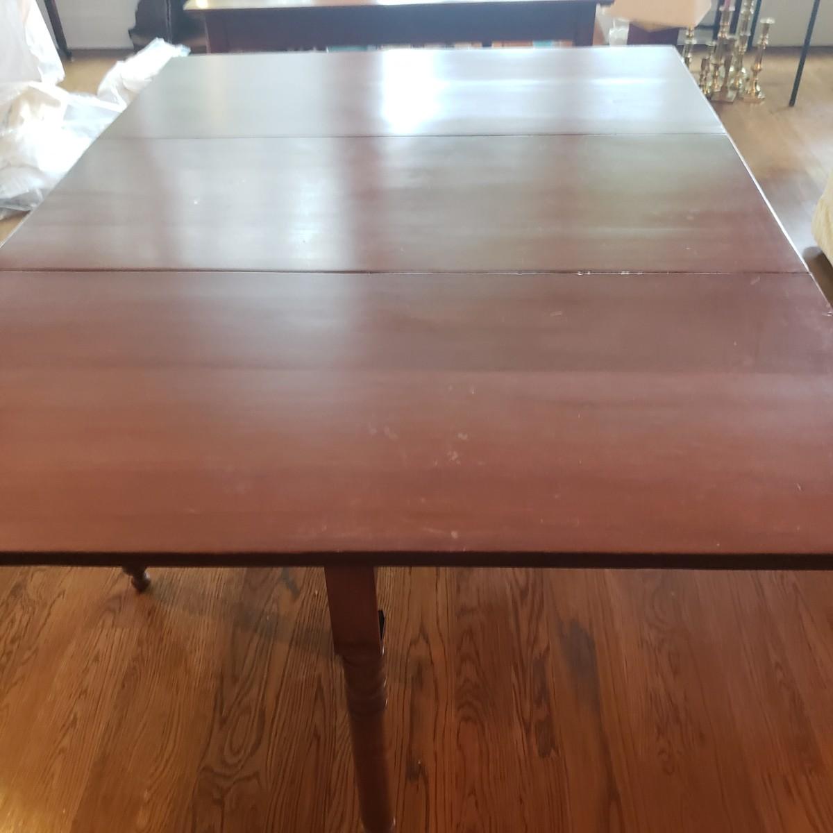 This Benbows wooden gate leg drop leaf table by itself with the sides open measures 63" x 47" x 30" H. In its closed position the table measures 21" x 47" x 30" H. The table comes with two demilune tables (25" x 47" x 30" H) that can be added to the main table either in its closed position or with the sides extended out. The entire table measures 113" extended out with the demilune tables on each end.. See pictures for details. According to the seller, this is a Benbow's table, but it has no markings so we cannot verify the brand.