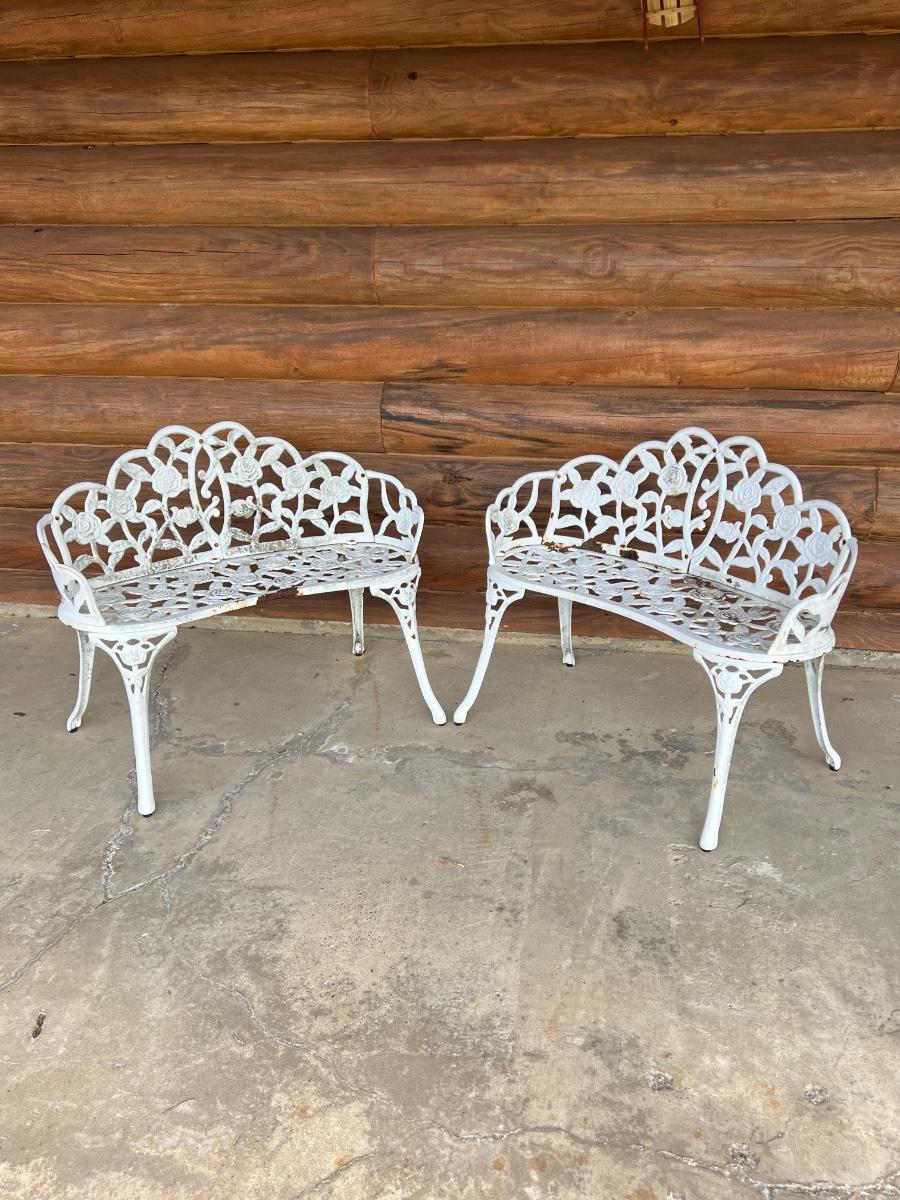 Pair (2) Cast Iron Rose Benches ~ *Read Details