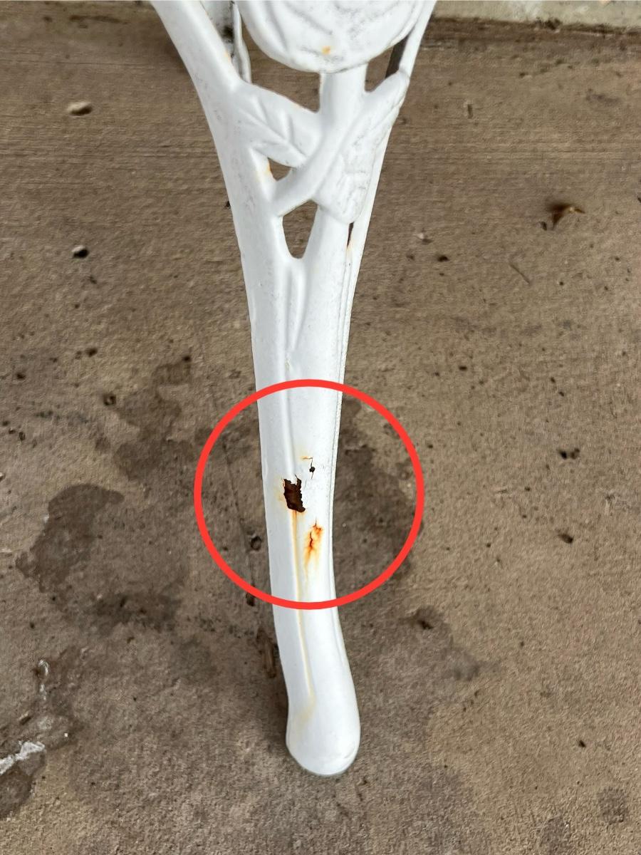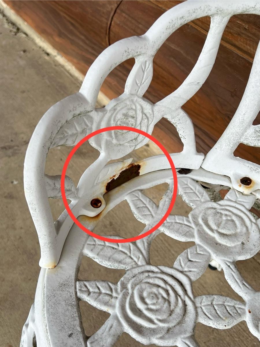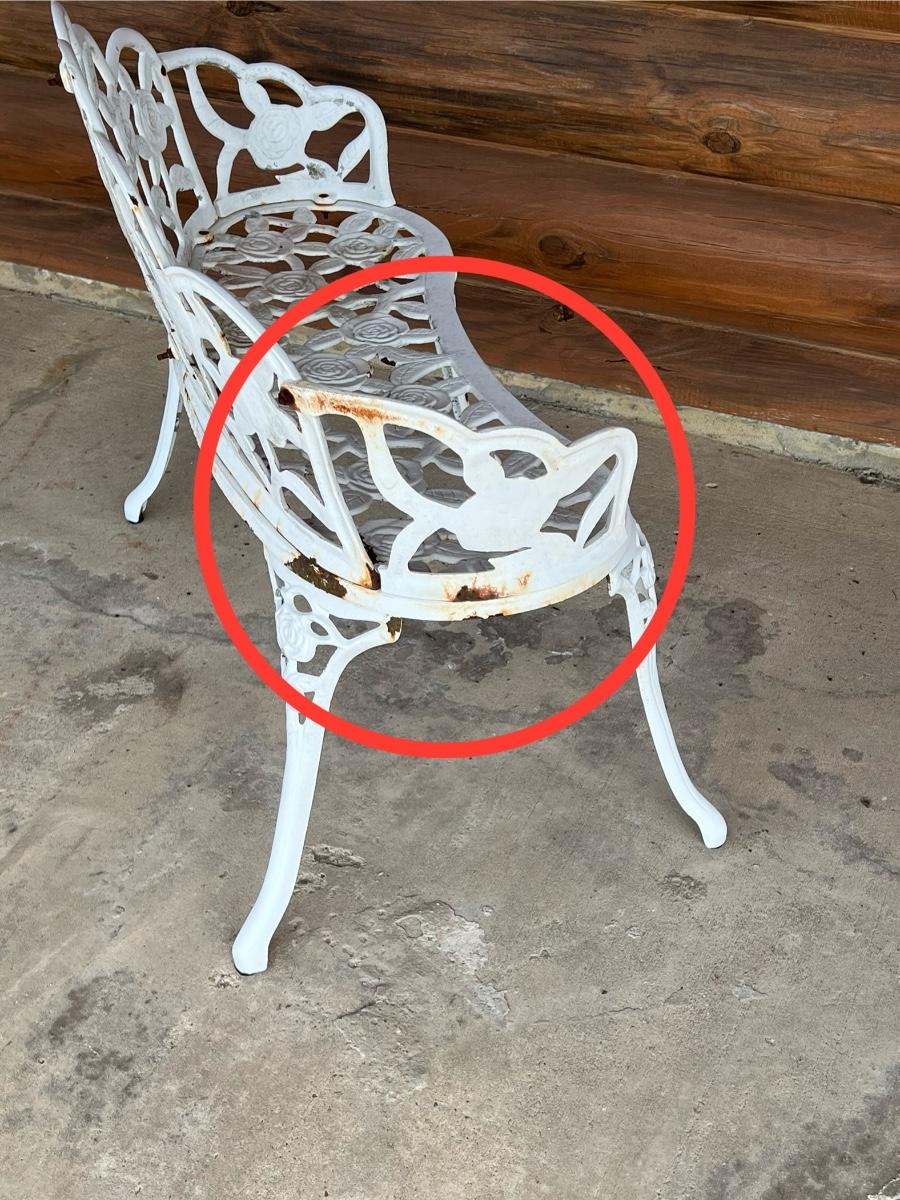 Has surface rust, they were not porch kept, they have more rust and wear than the other sets posted, they will be sold as is ~ 30” H x 38” W x 22” D