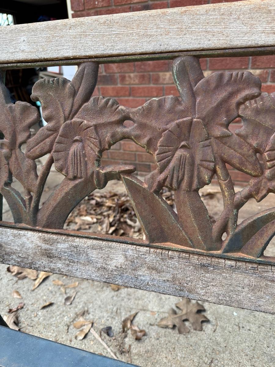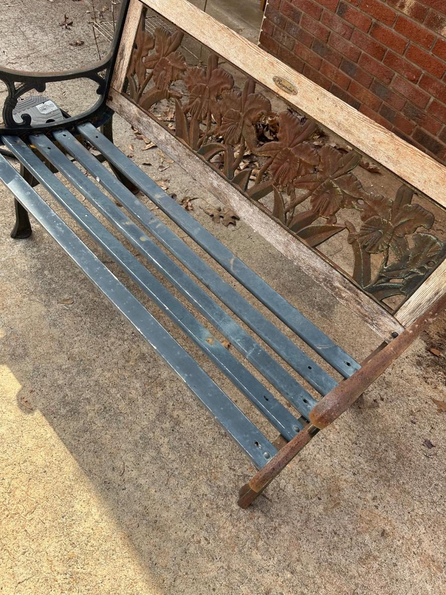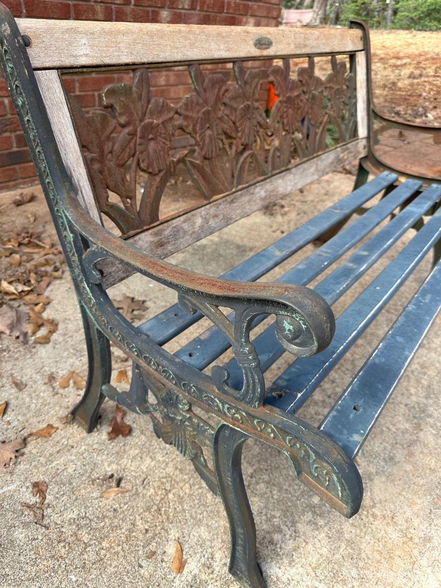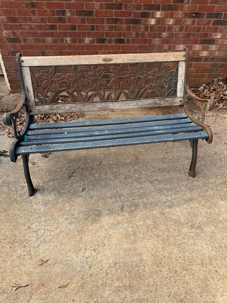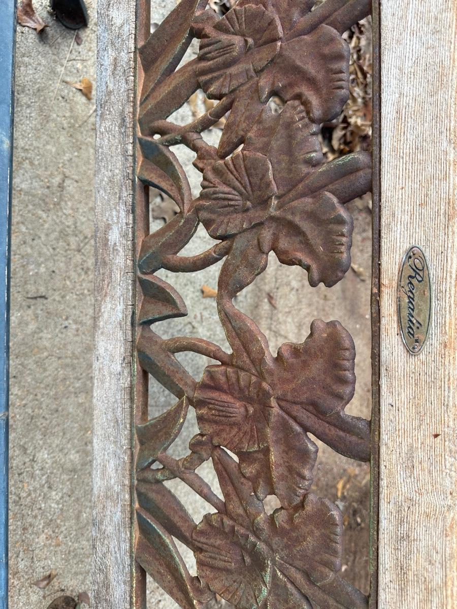 Regalia bench. PLEASE READ BEFORE BIDDING: Note this bench has some bend to the wood while sitting.