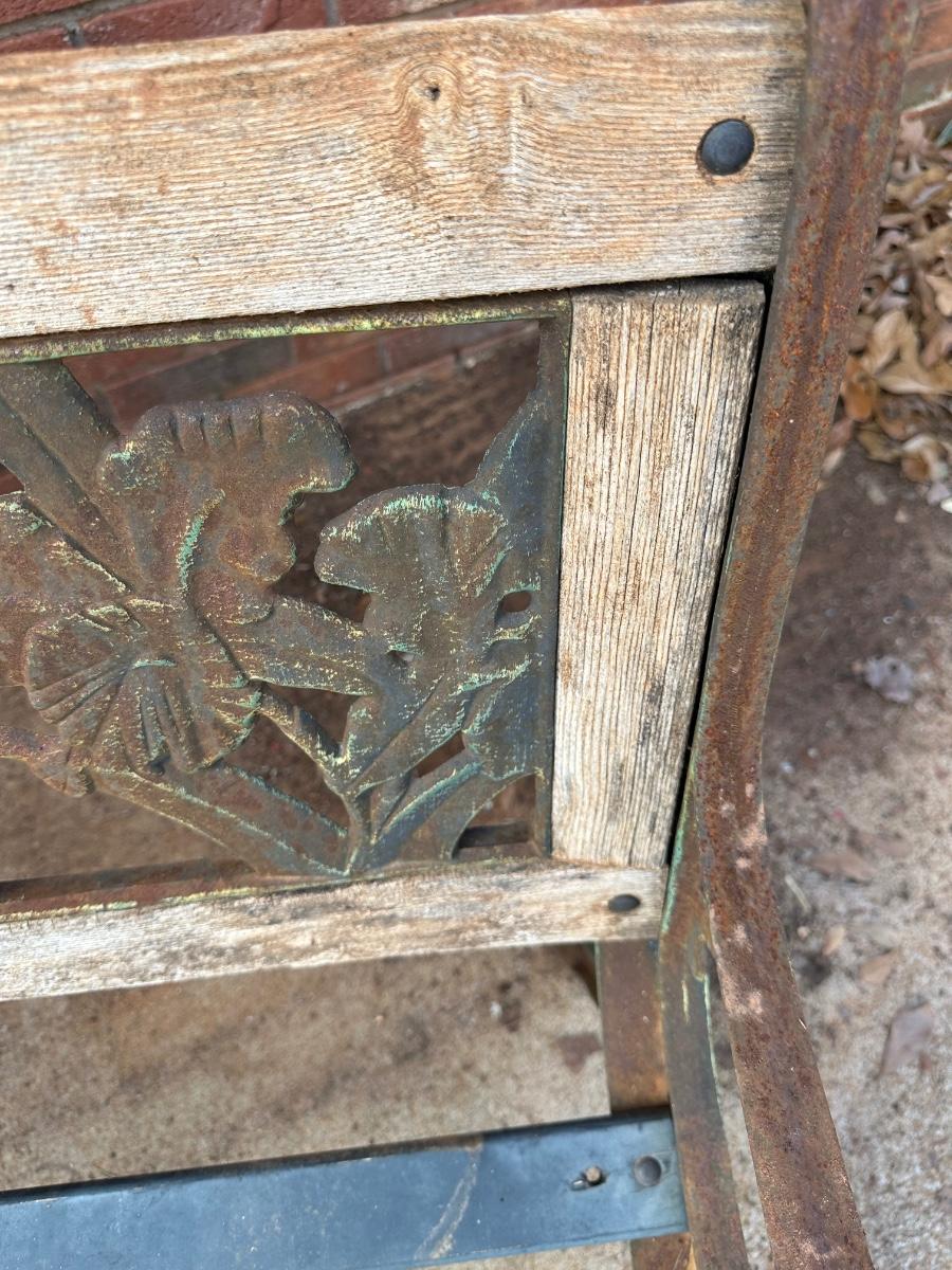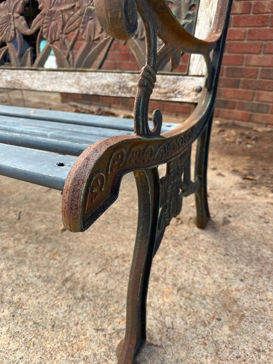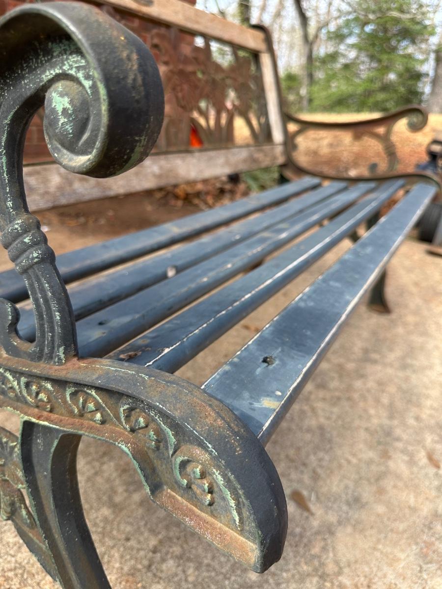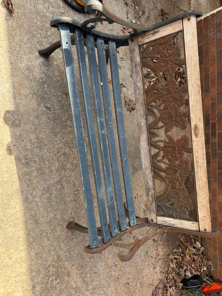 Regalia bench. PLEASE READ BEFORE BIDDING: Note this bench has some bend to the wood while sitting.
