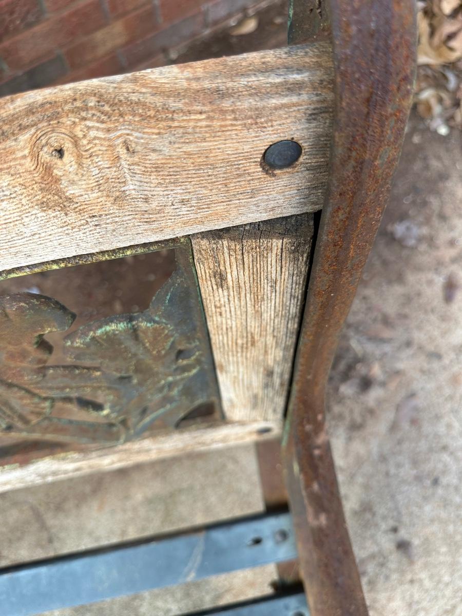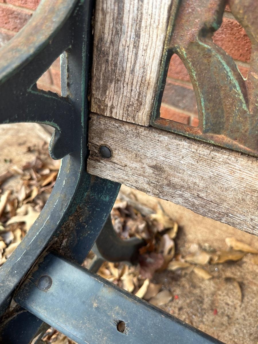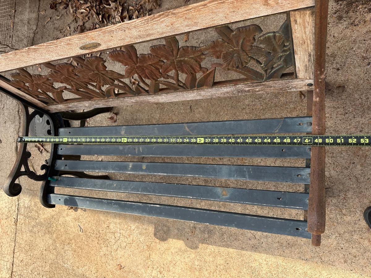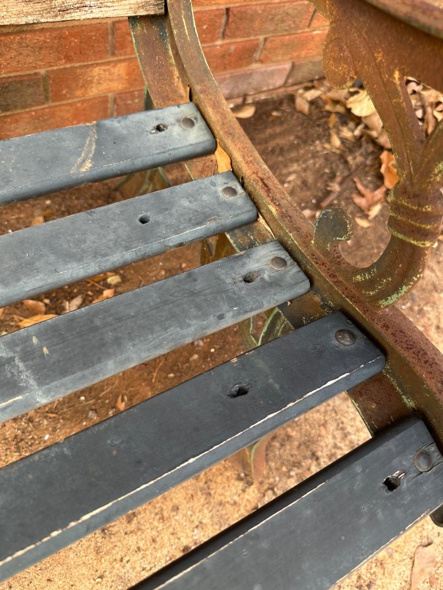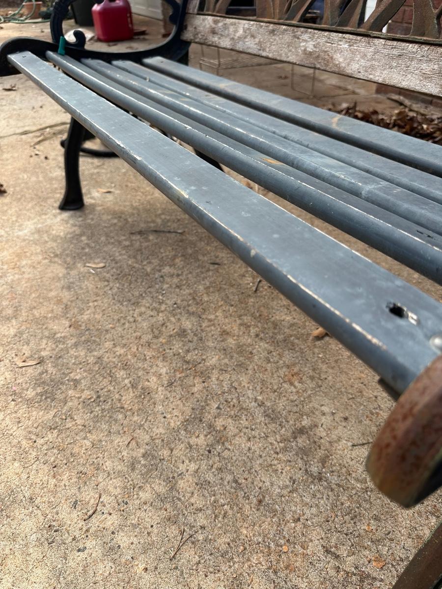 Regalia bench. PLEASE READ BEFORE BIDDING: Note this bench has some bend to the wood while sitting.