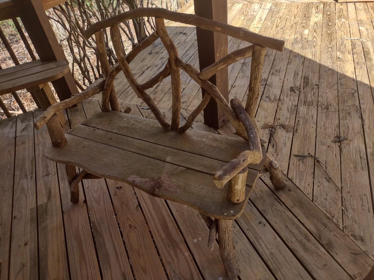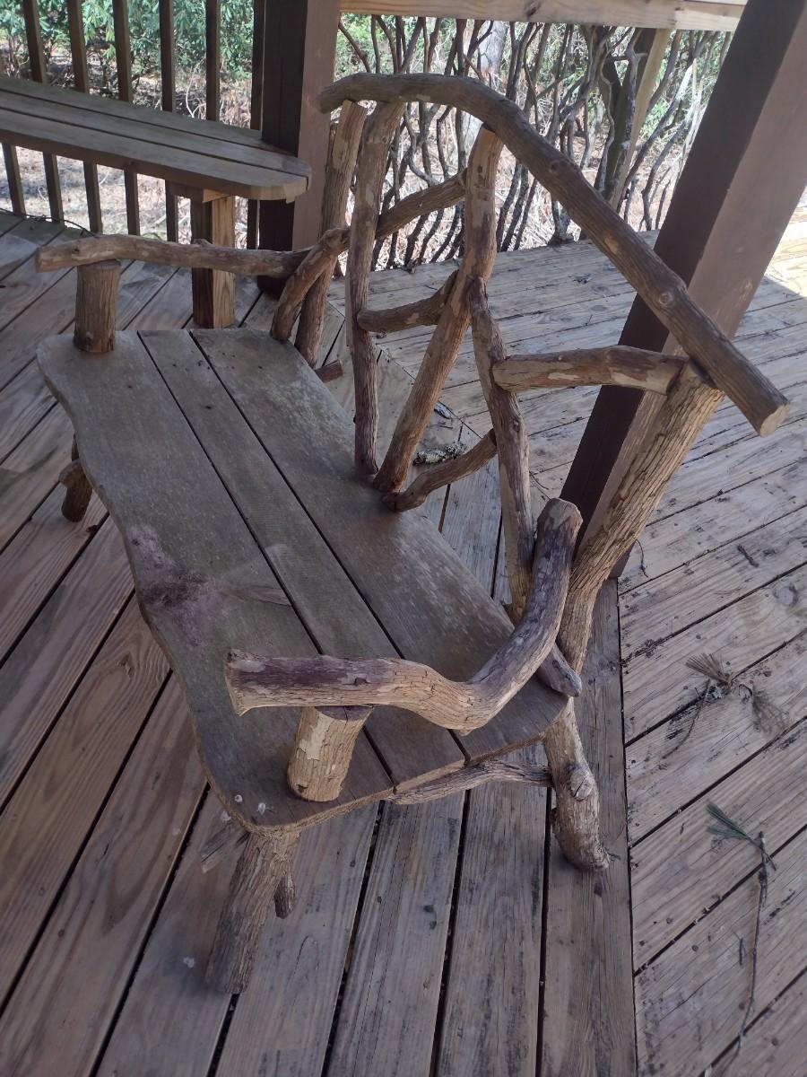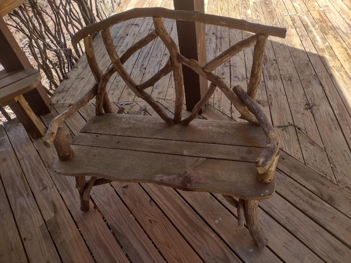 Twig and Log Cabin Outdoor Bench PLEASE NOTE:. Due to no internet connection or wireless service, all invoices must be prepaid via PayPal, Stripe, or Zelle prior to arrival at pick up. Exact change cash onsite is acceptable but absolutely no debit or credit cards at time of pick up.