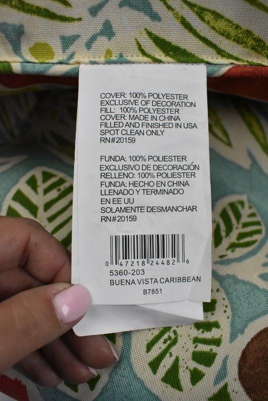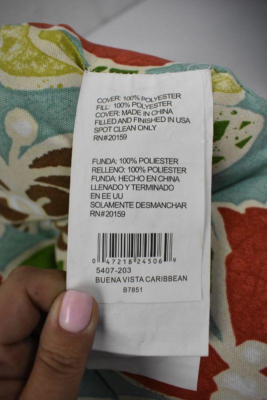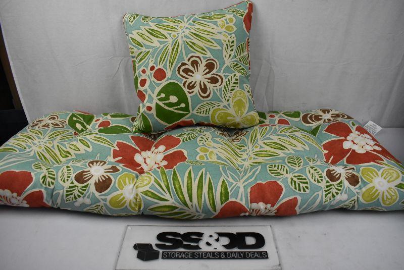 Bench Cushion & Throw Pillow. Blue w/ Floral "Buena Vista Caribbean"