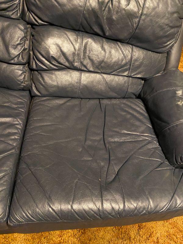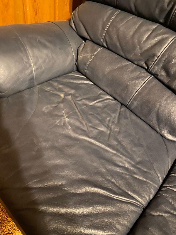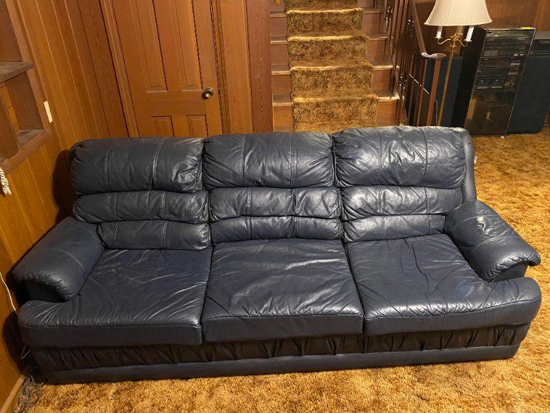 Benchcraft Navy Leather Sofa good used condition 84x32x32