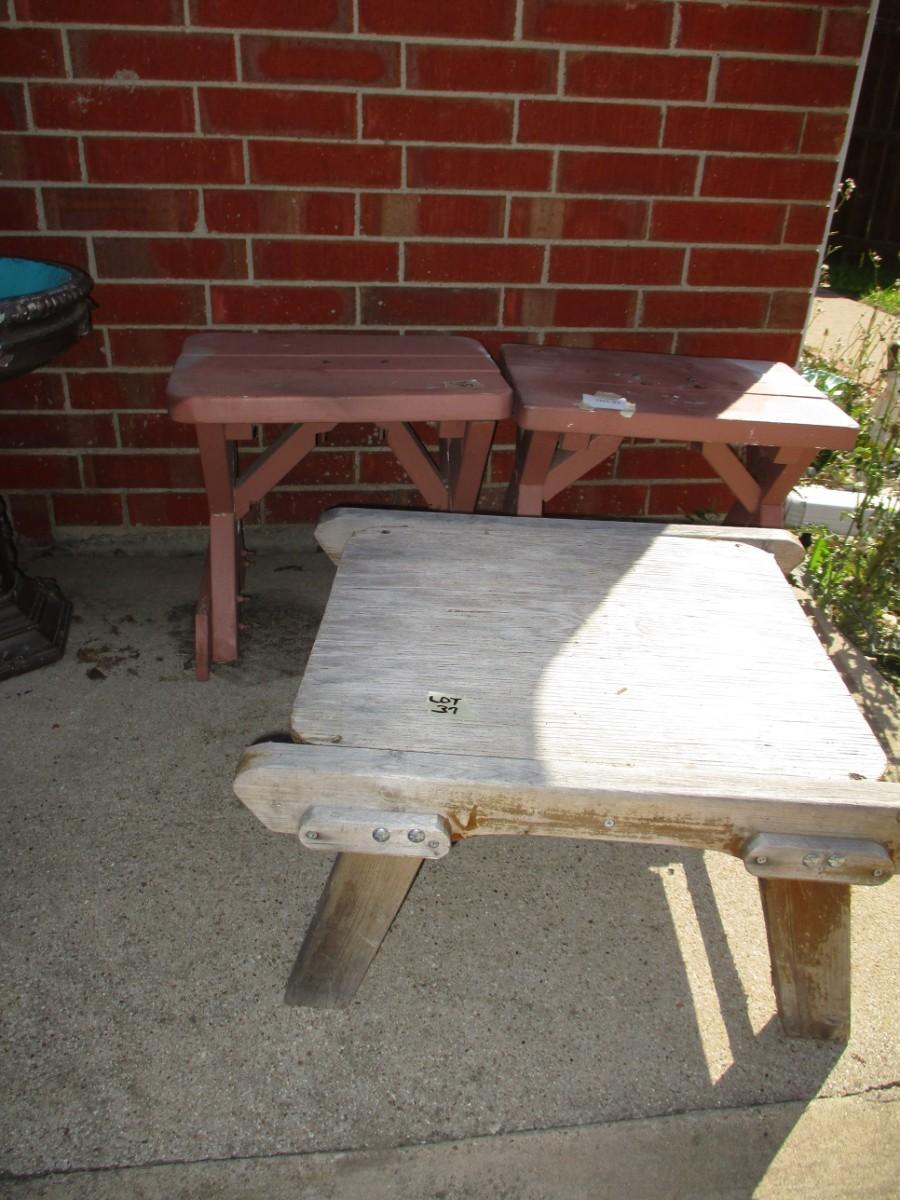 Smaill wooden bench seats. Normal wear. Sturdy. 3pc