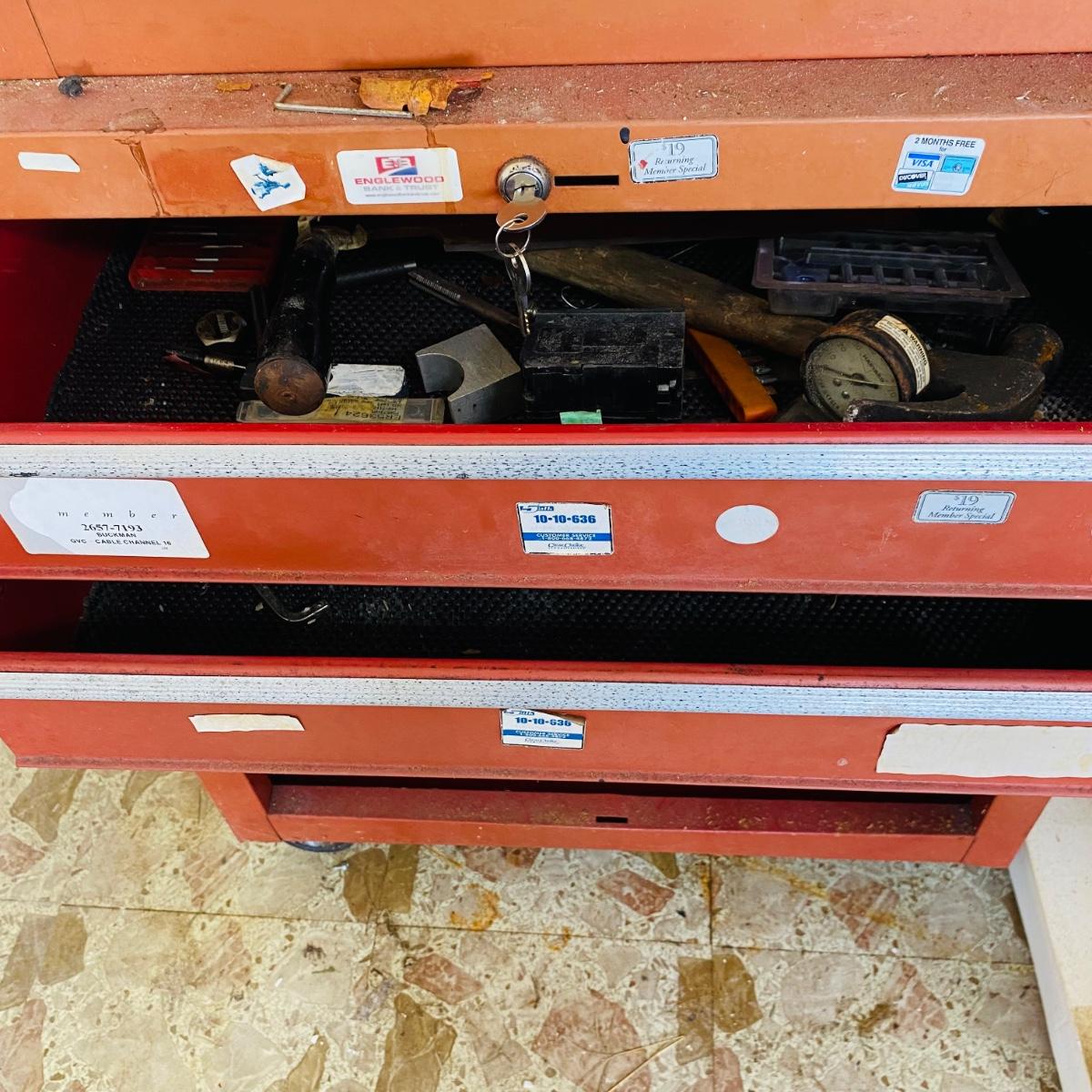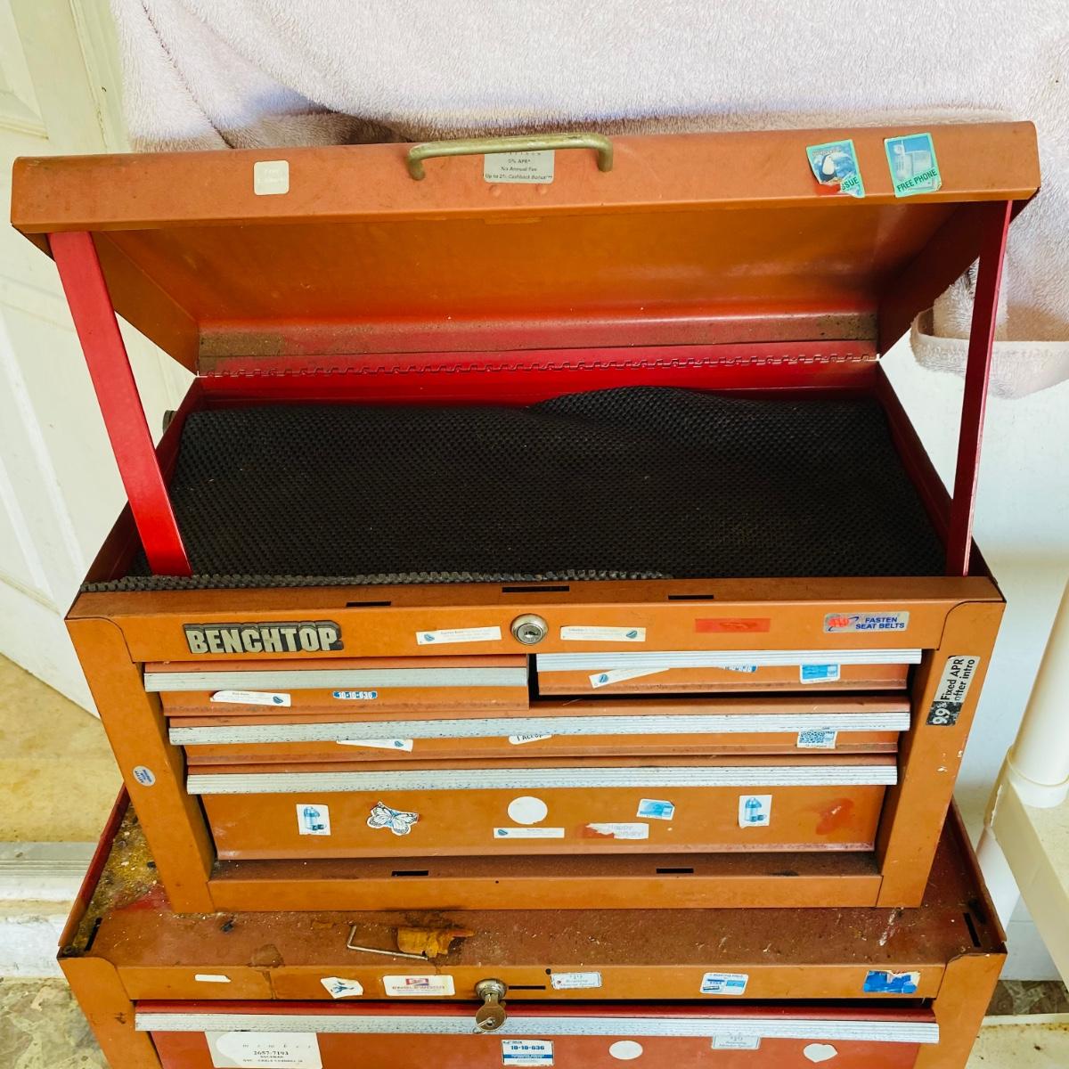 Top of tool chest is removable. Top measures 22 “L x 12 “W x 13”H. Bottom measures 27”L x 14”W x 30.5”H. Together the height is 43”H. Chest is on wheels.