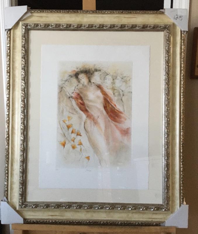 Excellent condition. Measures 30” x 38” overall. Includes professional matting and gallery frame shown. Please see pictures for details. Packaging and shipping services available. Please contact us, if you need a shipping quote, before bidding.