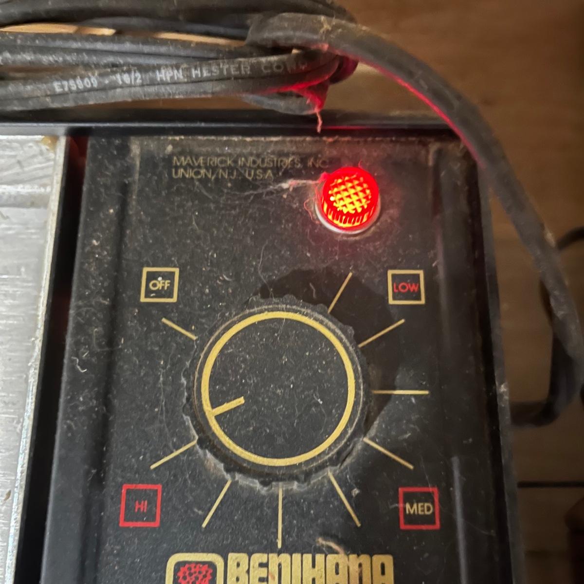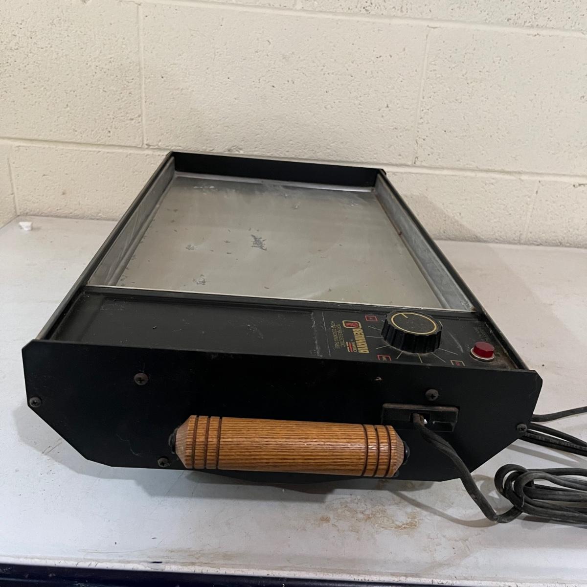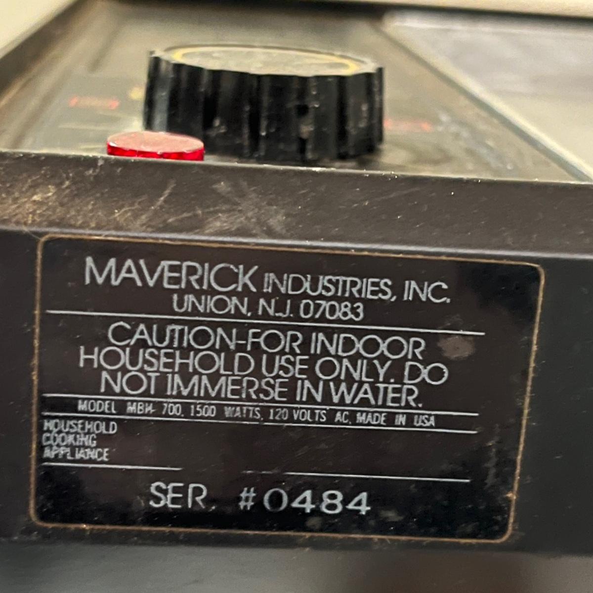 Lot includes a Benihana portable electric home cooking table by Maverick model # MBH 700. Unit powered on when tested. Unit measures 12” x 26” x 5”.