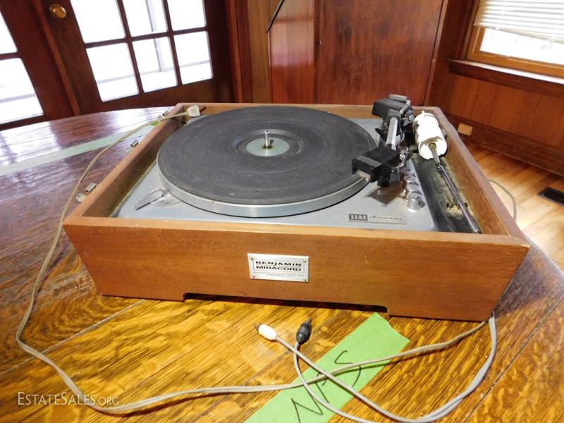 Benjamin Miracord German Made Elac 40A Turntable in solid wood case. Base is cast metal with heavy and well made components. Working condition unknown.