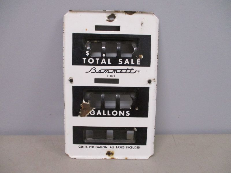 Bennett E-4816 Gas Pump Face Sign - Porcelain Advertising Oil