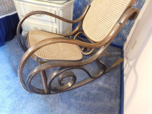 Bent Wood Rocker with Cane Back and Seat