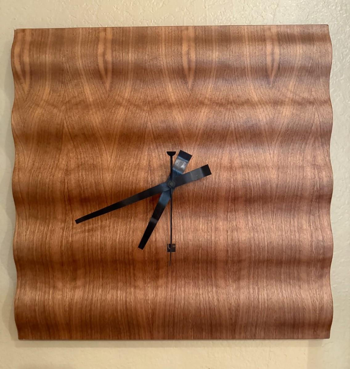 Bent Wood Walnut Clock by Umbra. Dimensions 20" x 20".