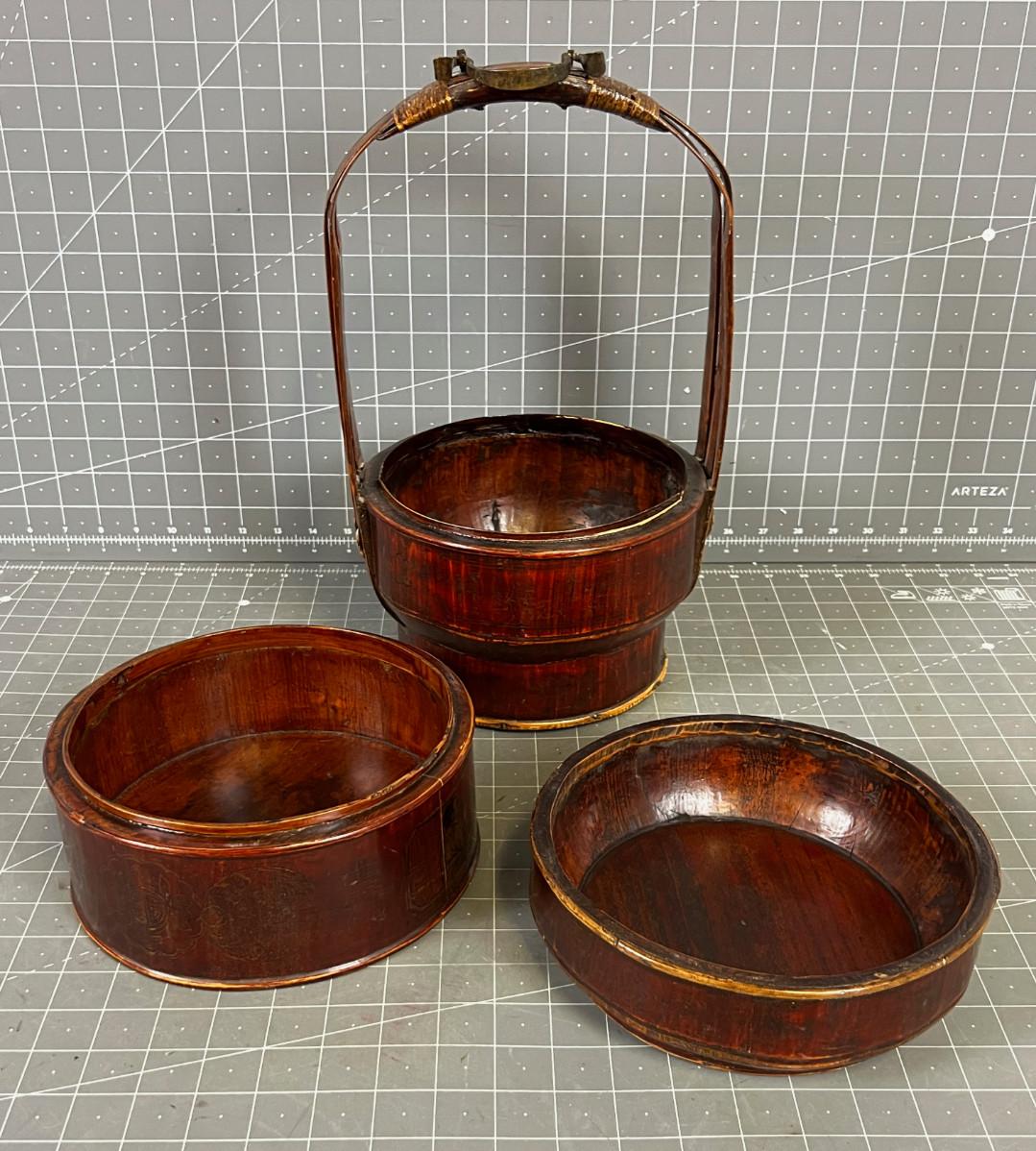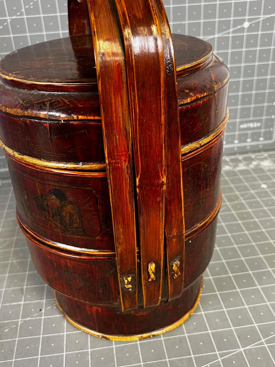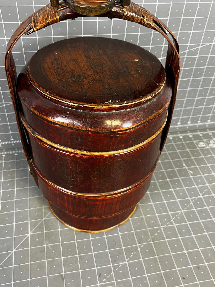 Bento Box, Lunch Bucket Wood Carved Figures, Vintage