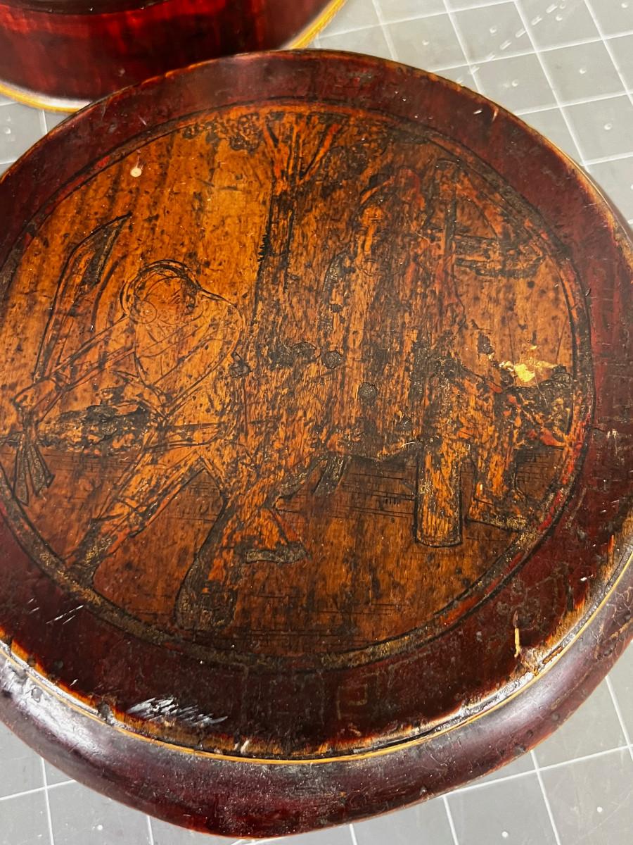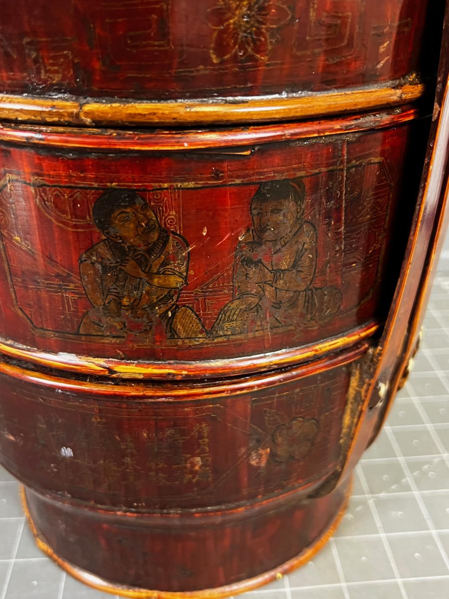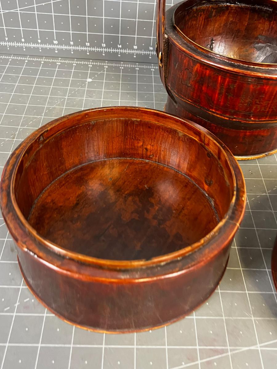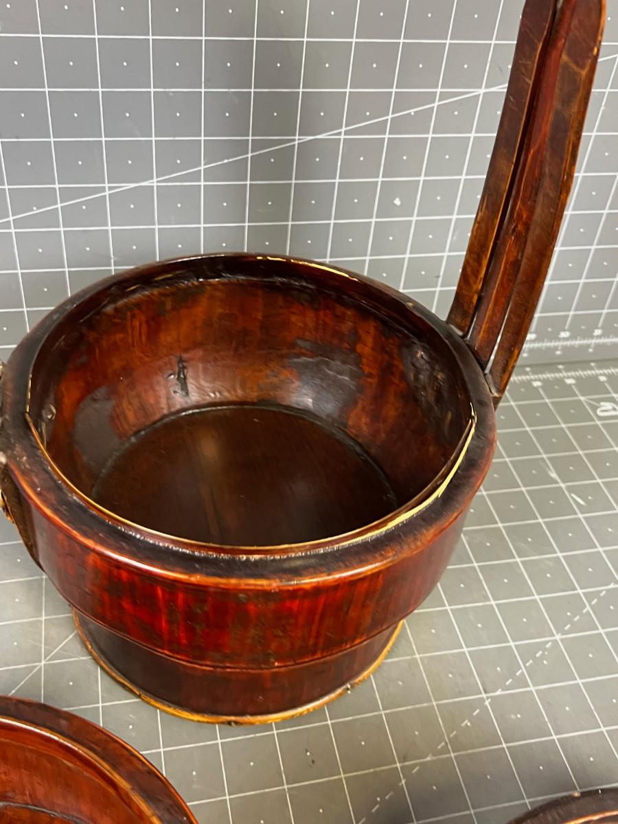 Bento Box, Lunch Bucket Wood Carved Figures, Vintage