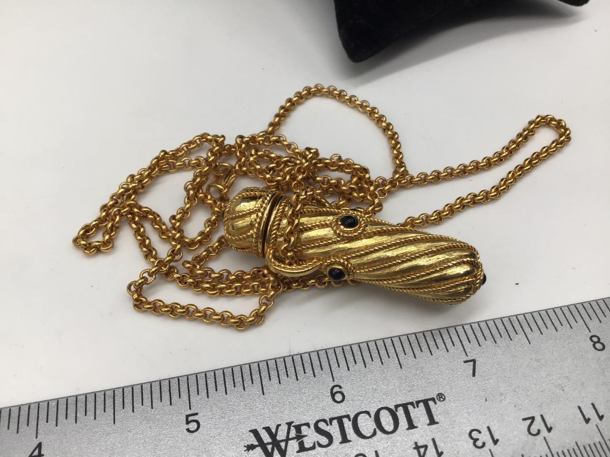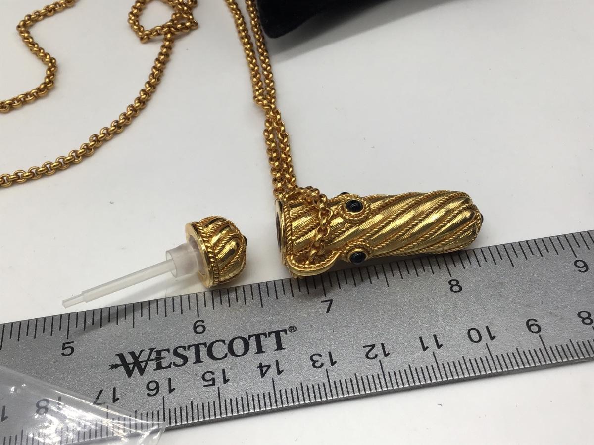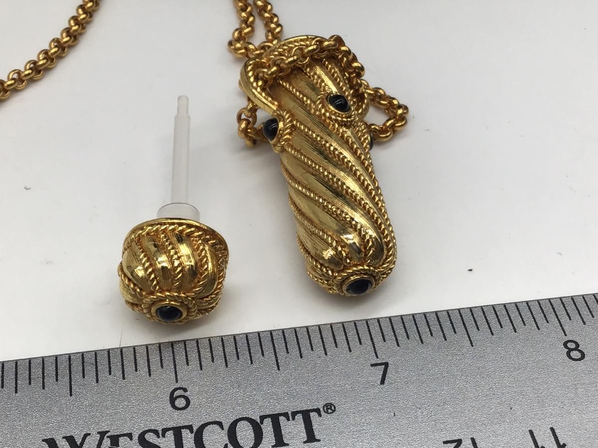 Edgar Berebi Necklace Perfume Bottle Isabelle Gold and Onyx Ornate 34" Chain Vtg.