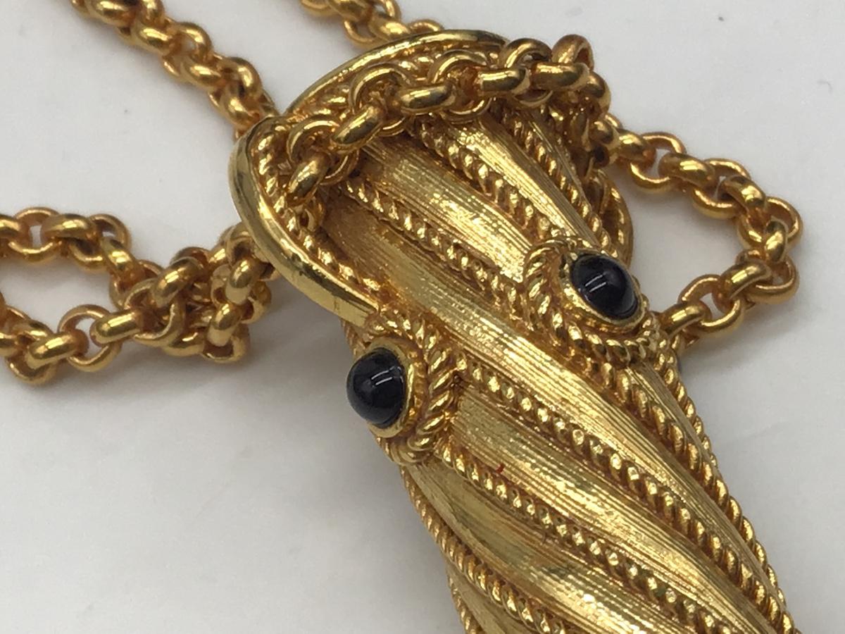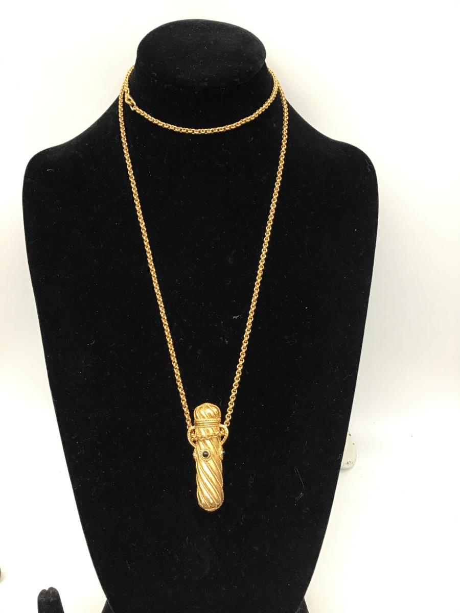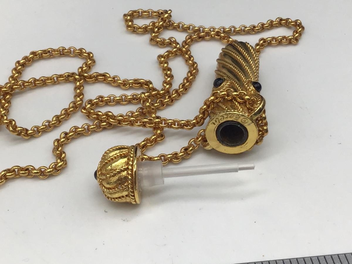 Edgar Berebi Necklace Perfume Bottle Isabelle Gold and Onyx Ornate 34" Chain Vtg.