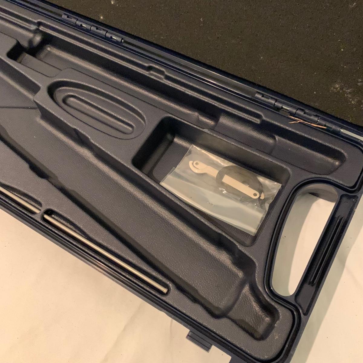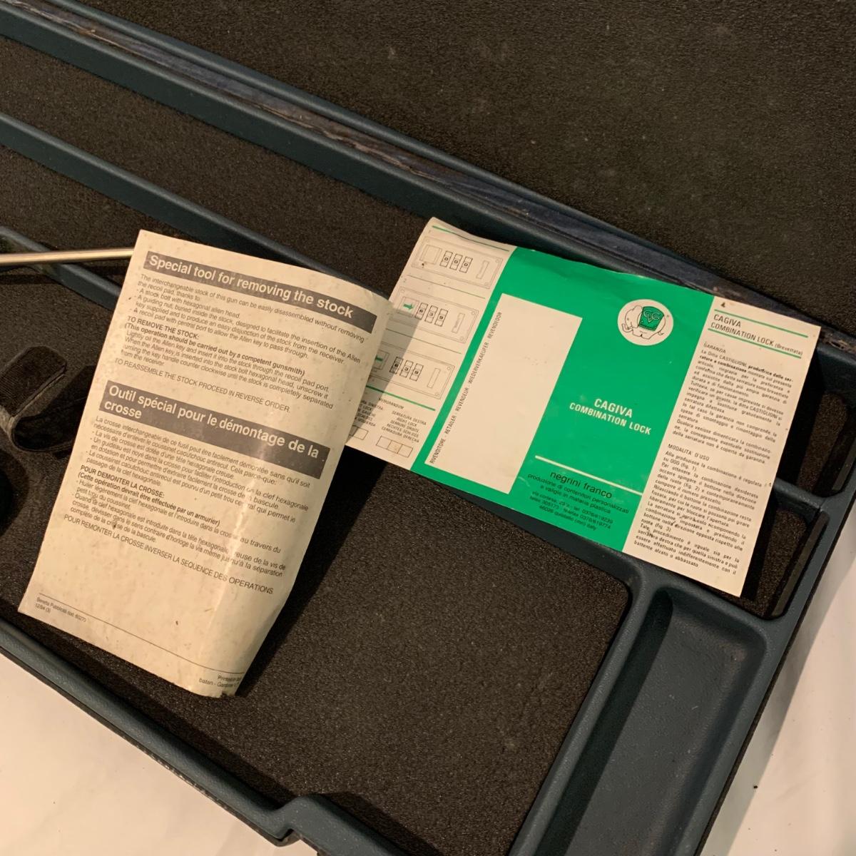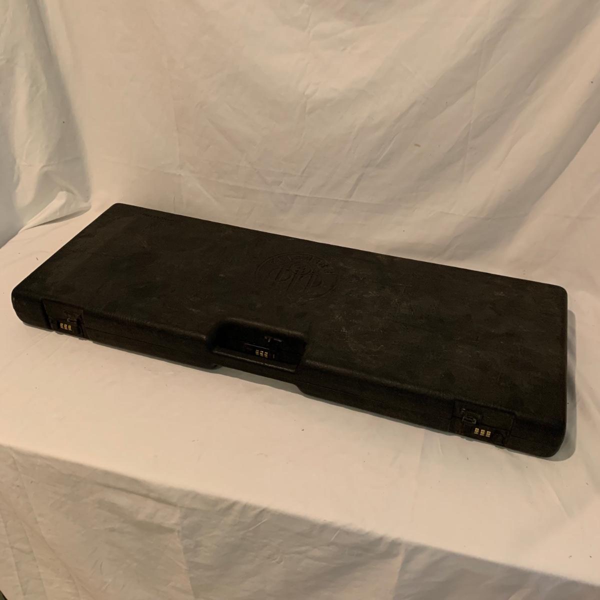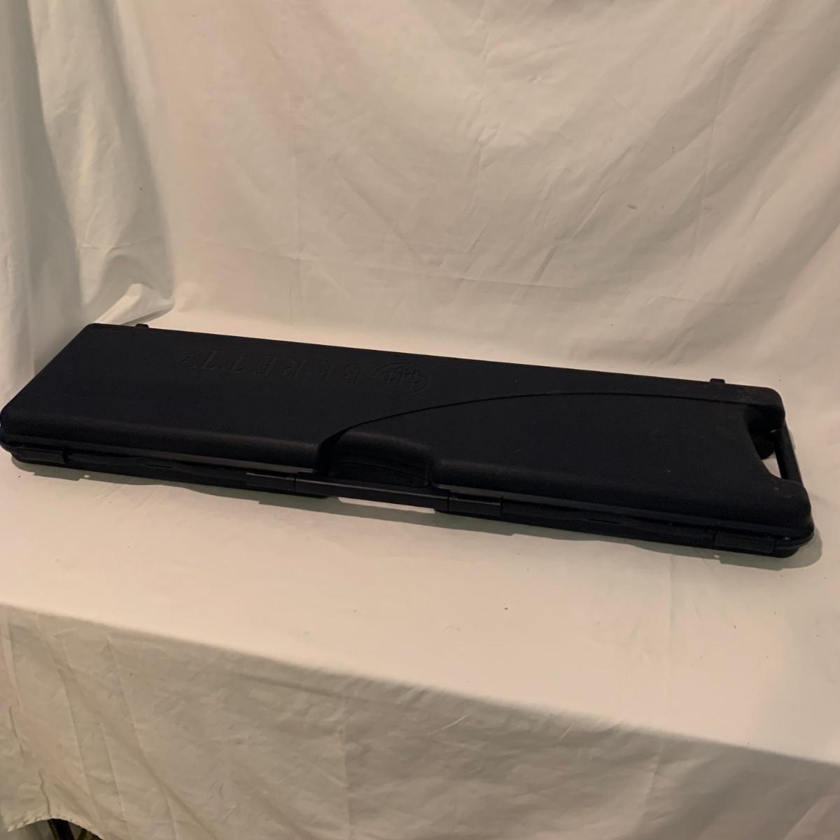 Three Beretta gun storage items. Two hard cases and one soft “Gunboy” for a 52” gun. Black case measures 35.5” x 13.5” x 3”H. It has combination locks and instructions on how to reset. It has a musty smell inside. Navy blue case is 38” x 11” x 3.5”H.