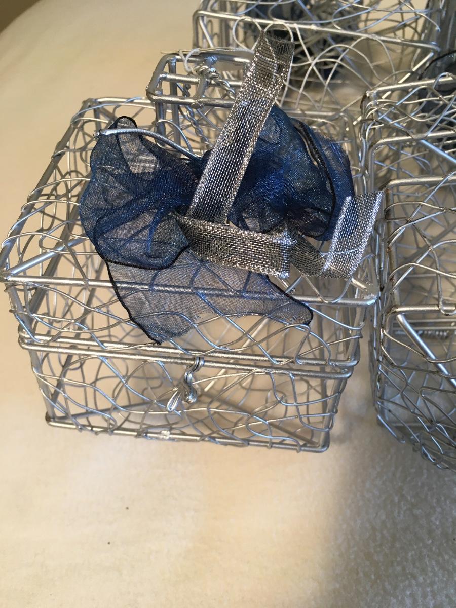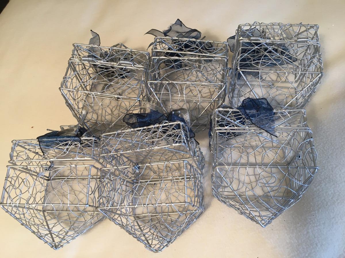 Set of 6 silver metal dreidles.