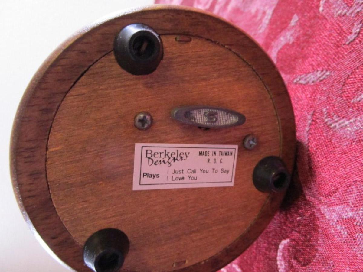 Plays "I Just Called to Say I Love You", 8-1/2" tall x base 3-3/4" in diameter