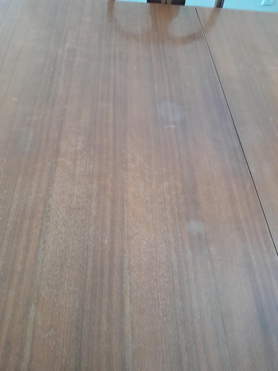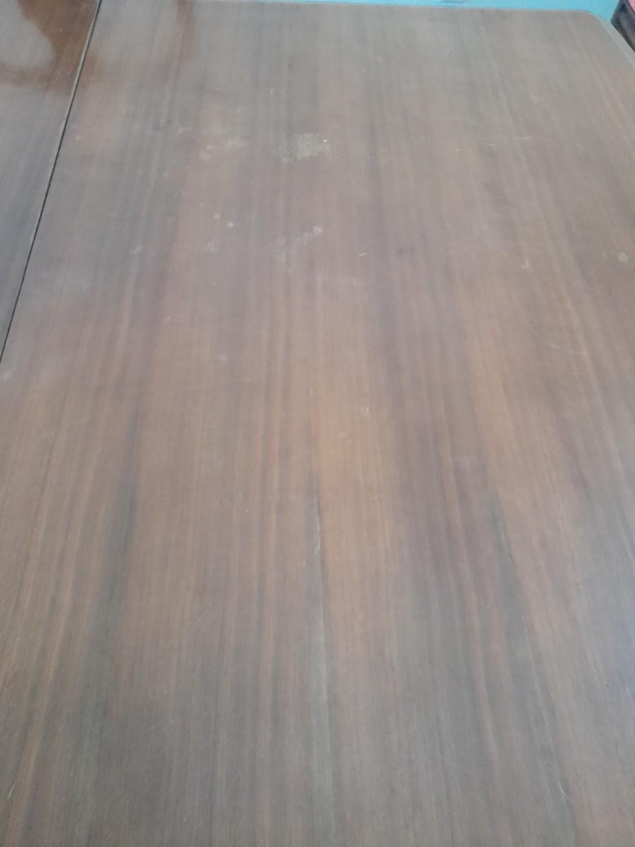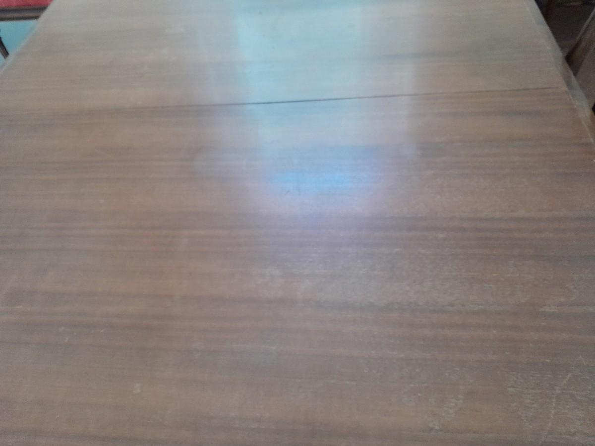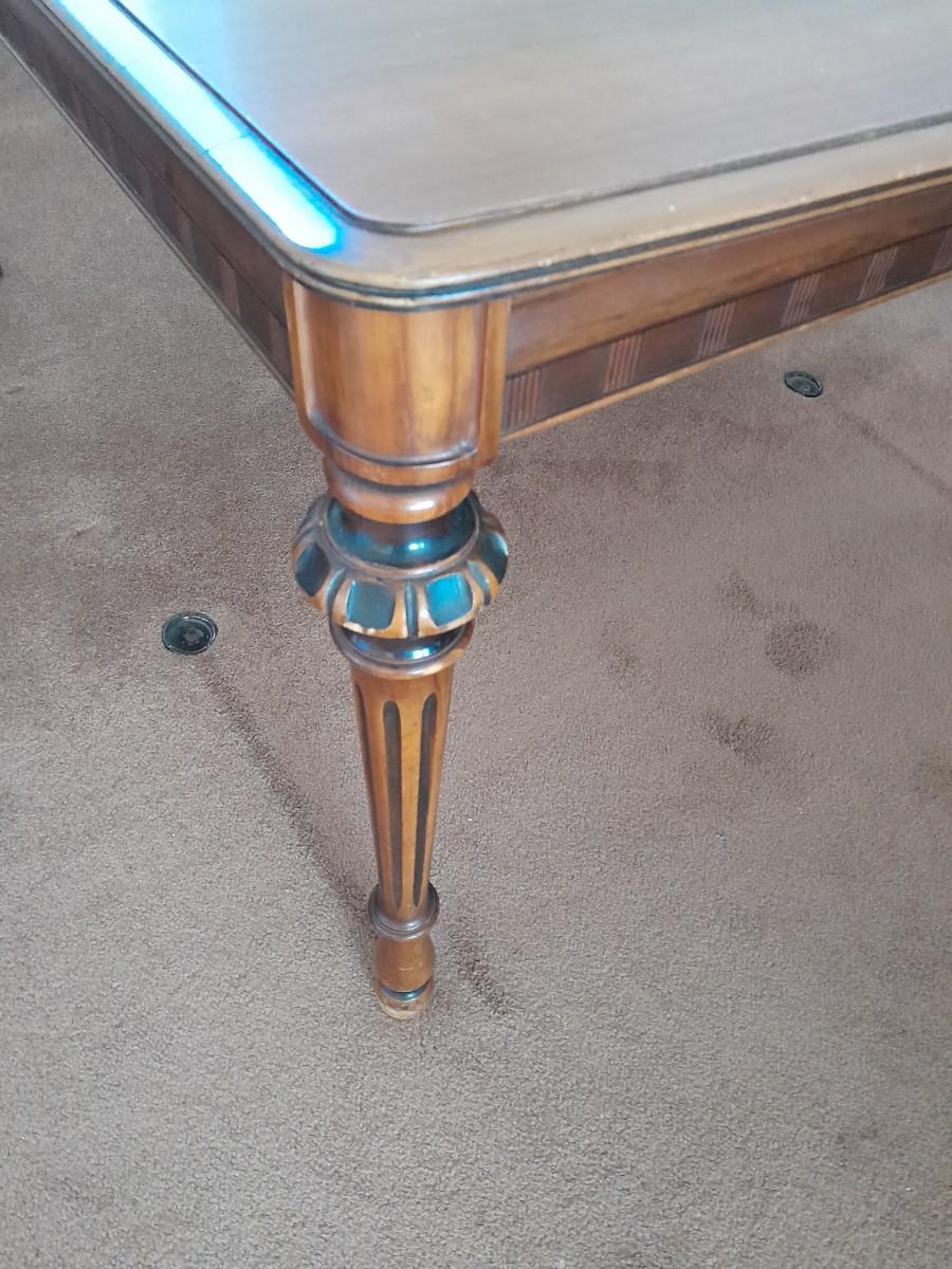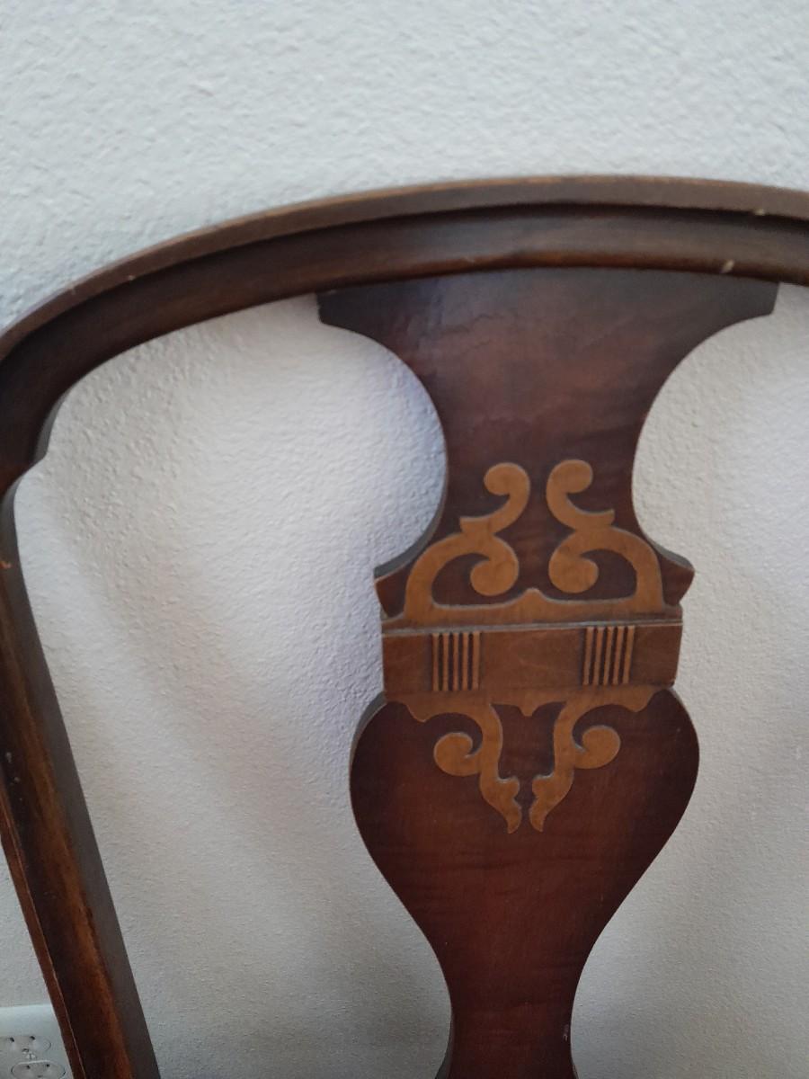 2 CAPTAINS AND 4 STANDARD CHAIRS WITH UPHOLSTERED SEATS. THIS TABLE MATCHES THE BUFFET AND SIDEBOARD. VERY GOOD CONDITION