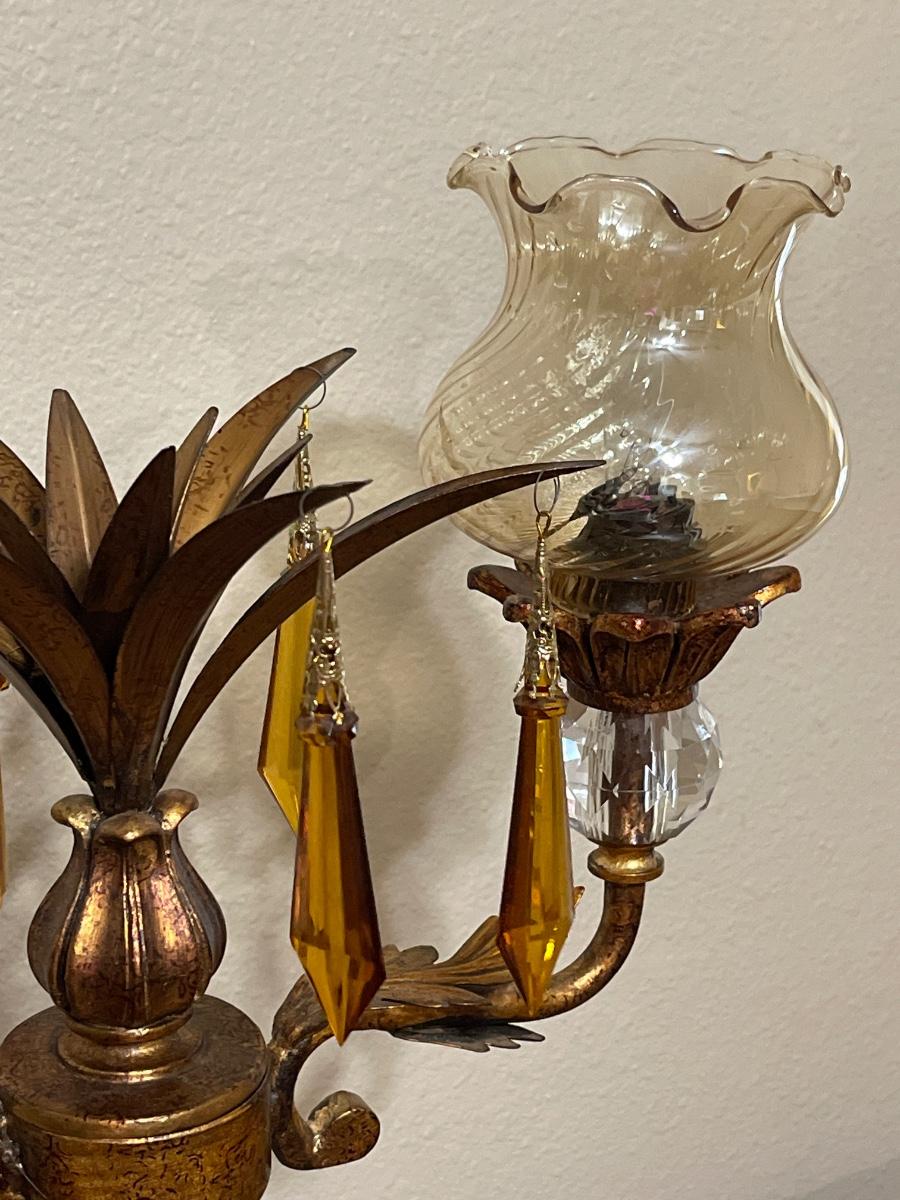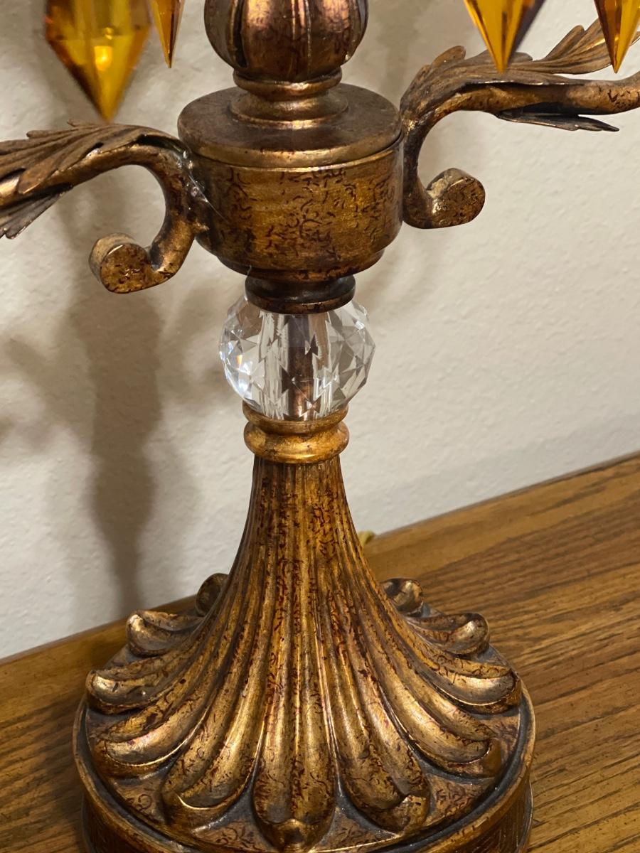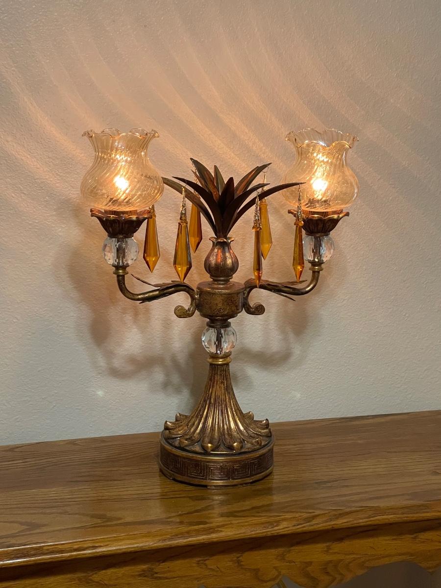 BERMAN ~ Double Lighted Antiqued Gold Lamp