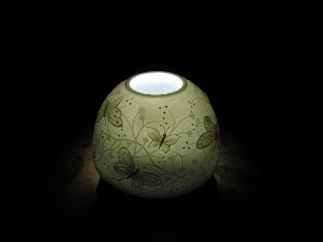Bernardaud Limoges Porcelain Lithophane Votive Candle Holder:  Approx 4" Across- Butterflies