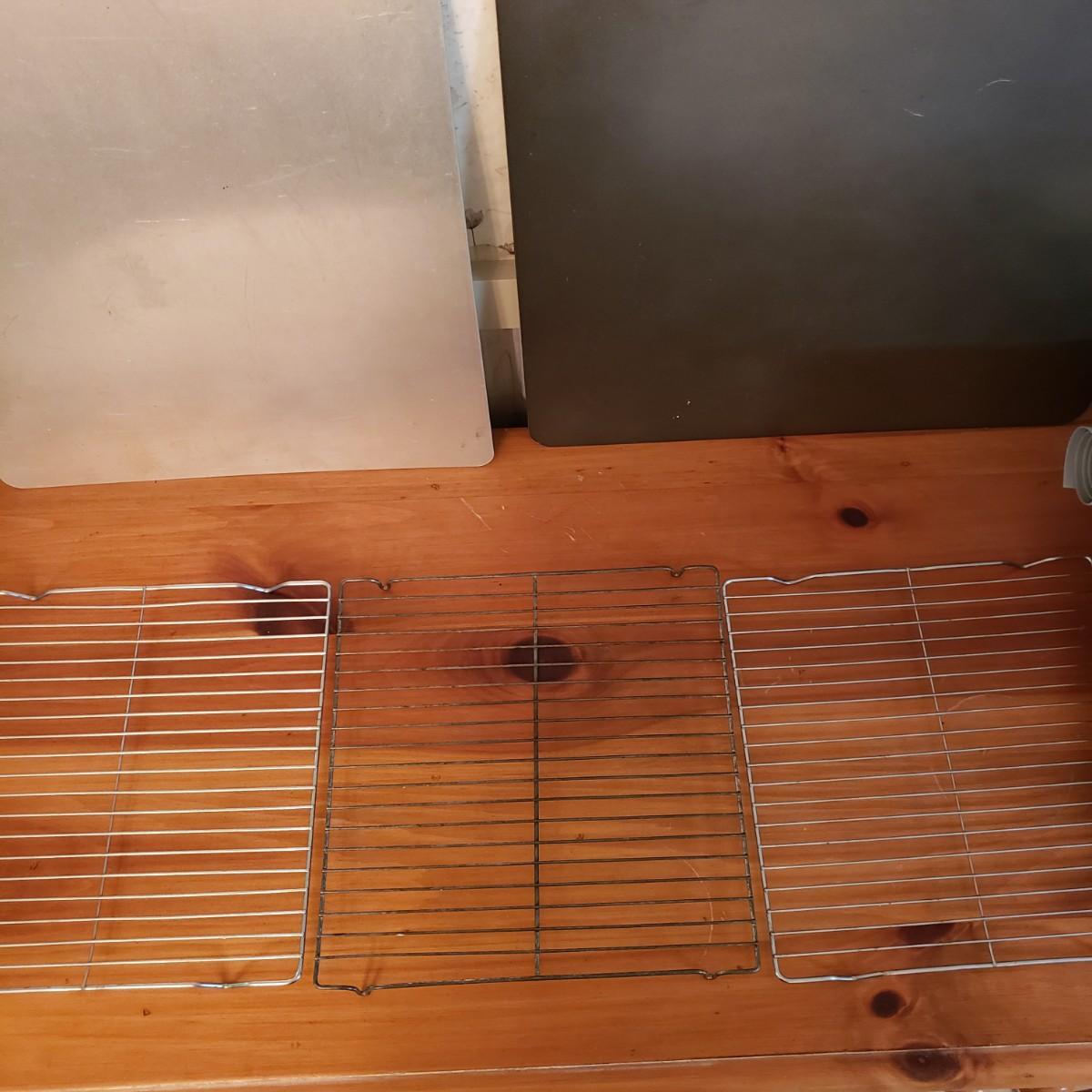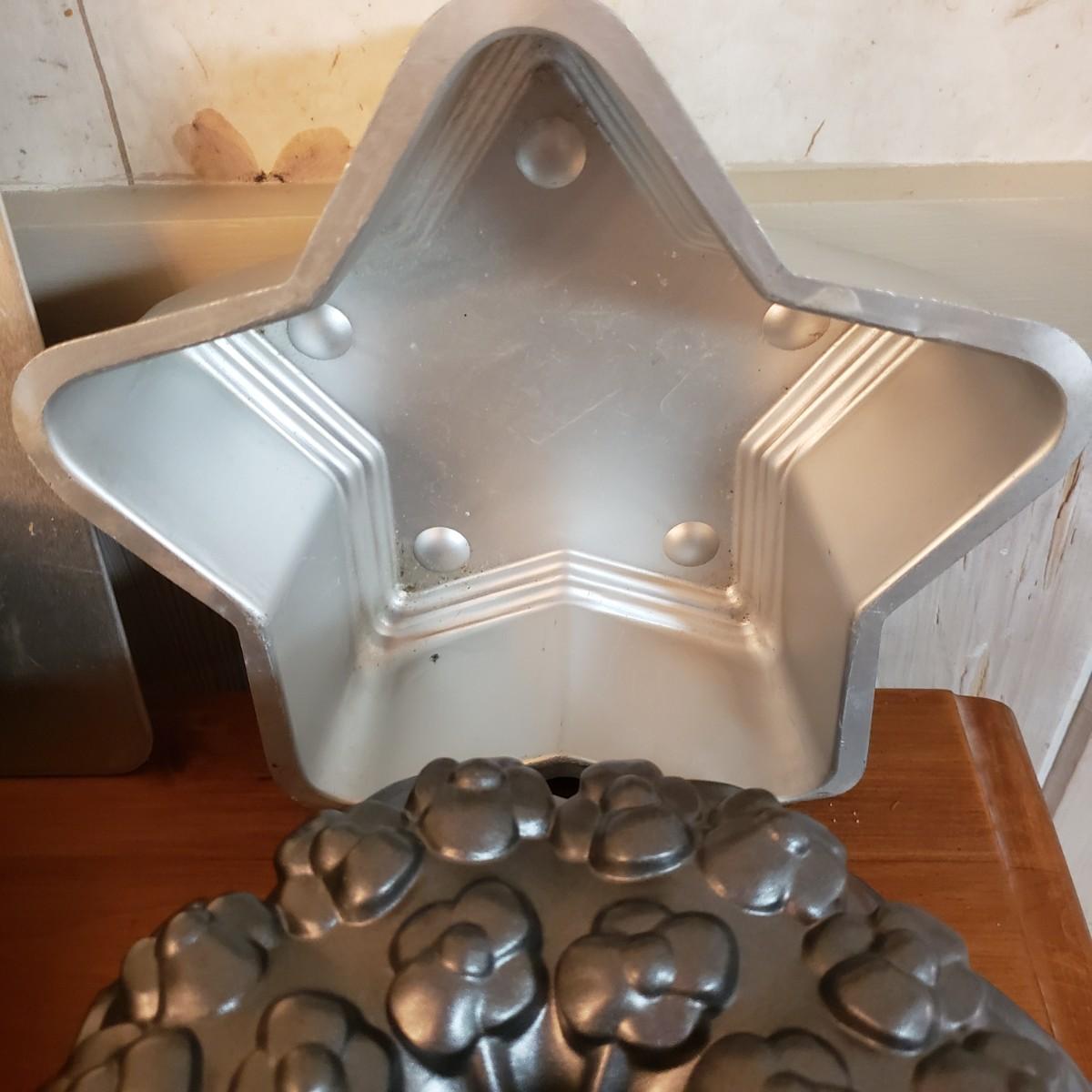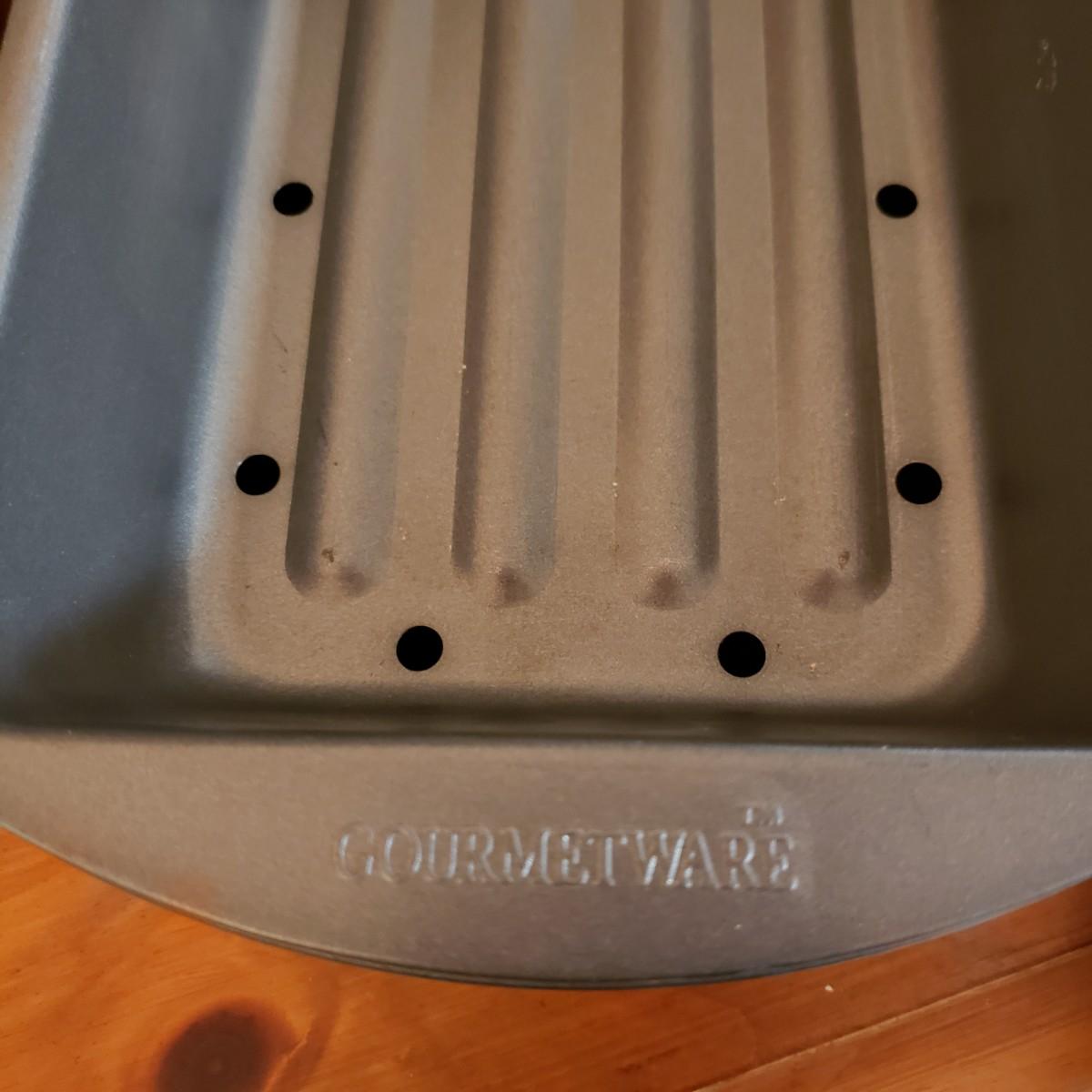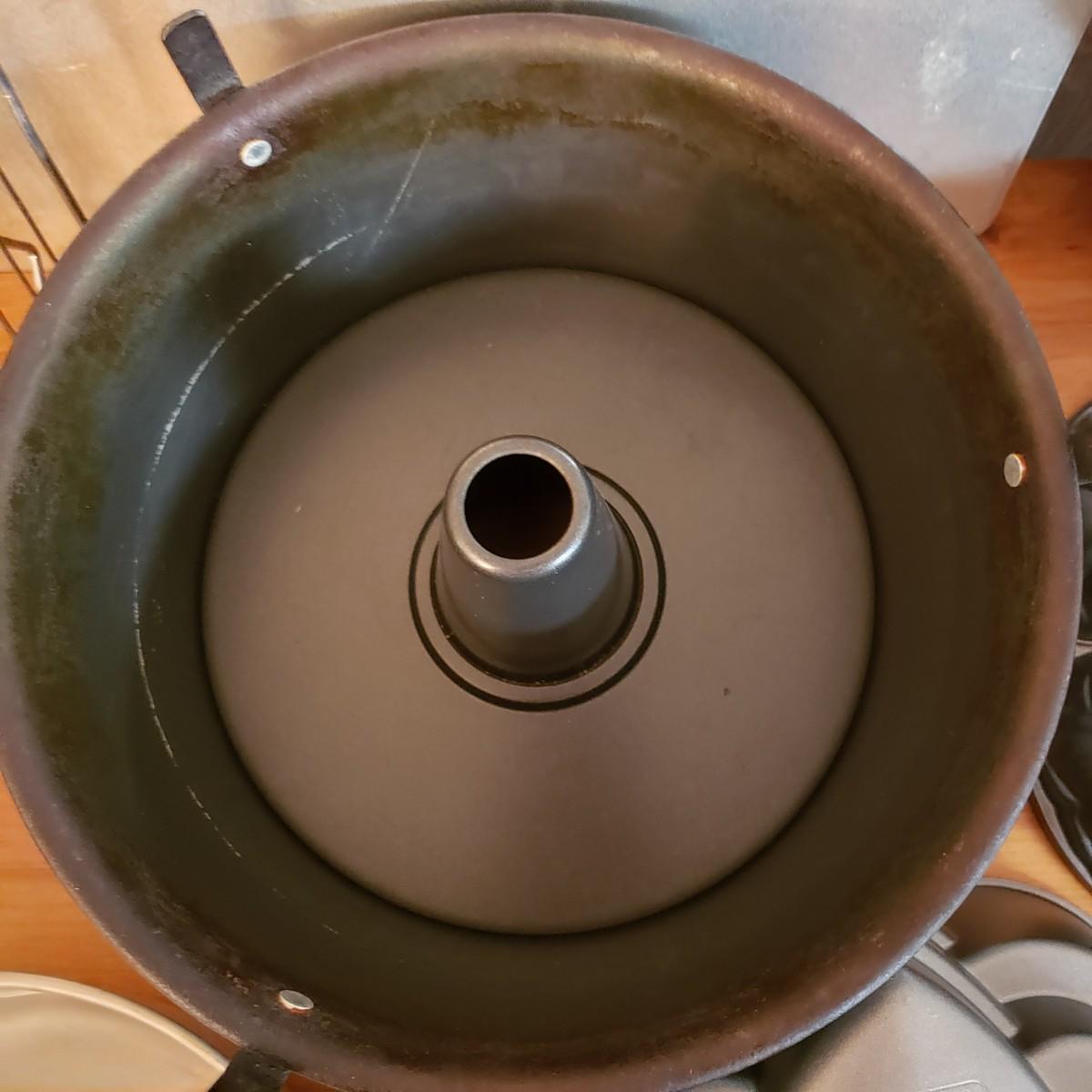 This lot contains 20 pieces of baking pans and dishes! There are 5 bundt pans, a star, circle cake pans and a heart pan from Berndes. A silicone baking mat and 3 cookie sheets; the larger one from Wilson measures 16" x 14". A large rectangle pan from Dura-Ware and an Oneida 9" x 13". A set of two Gourmetware loaf pan system. There are also 3 wire racks for cooling.