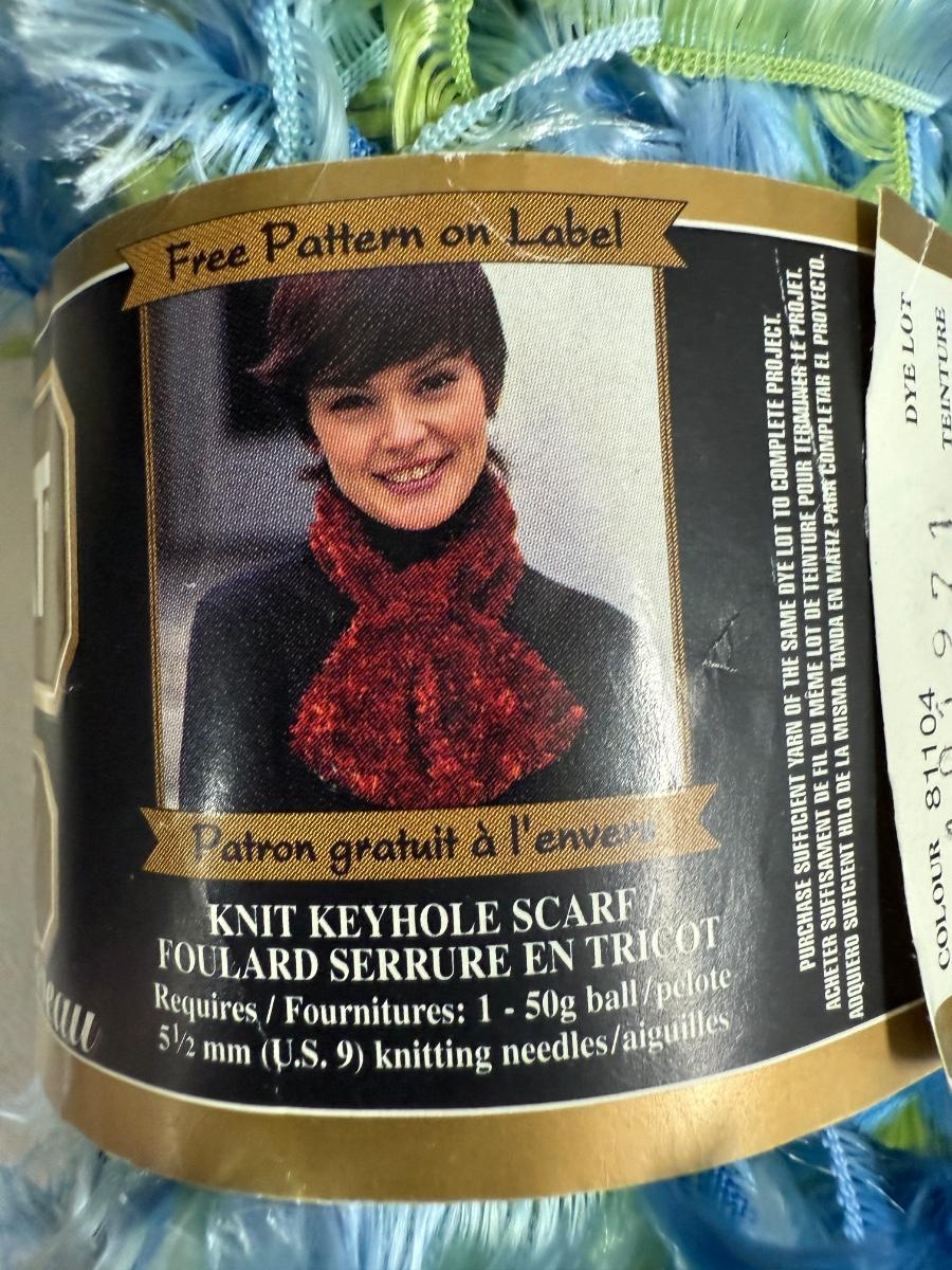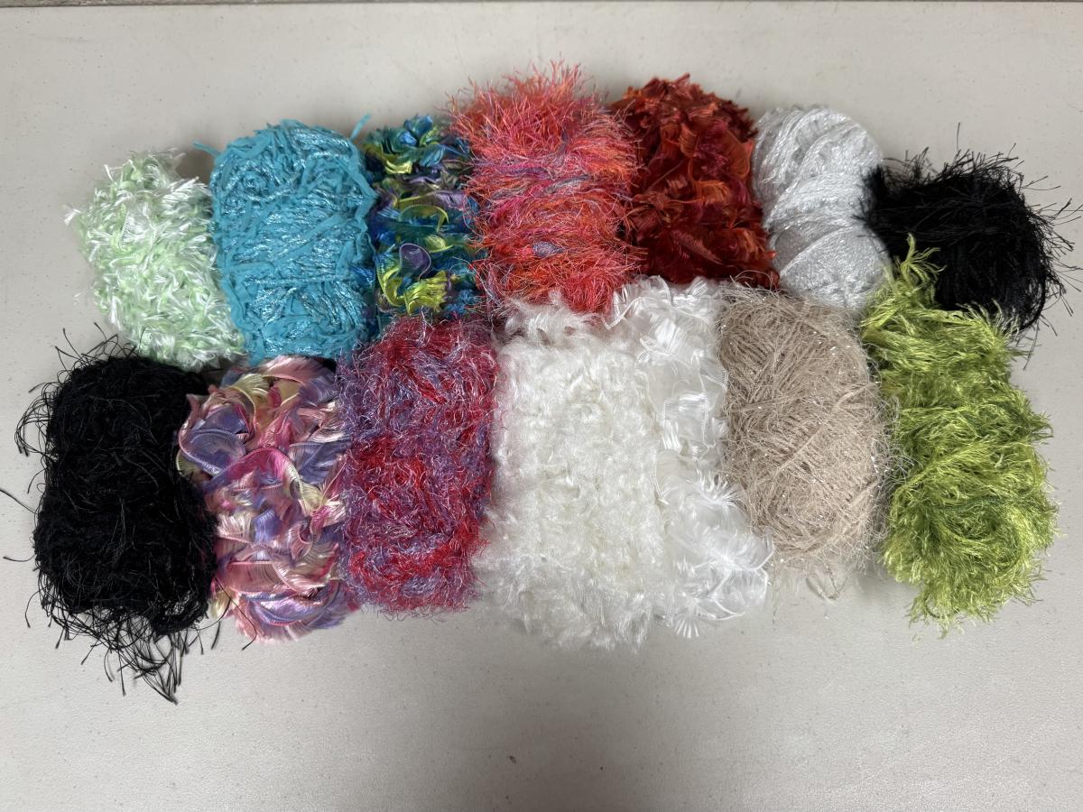Assorted colors of yarn by Bernet Boa Nouveau, Patons Brilliant, Lion Brand