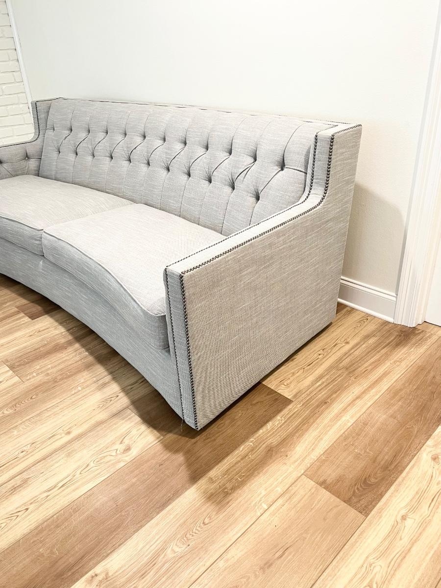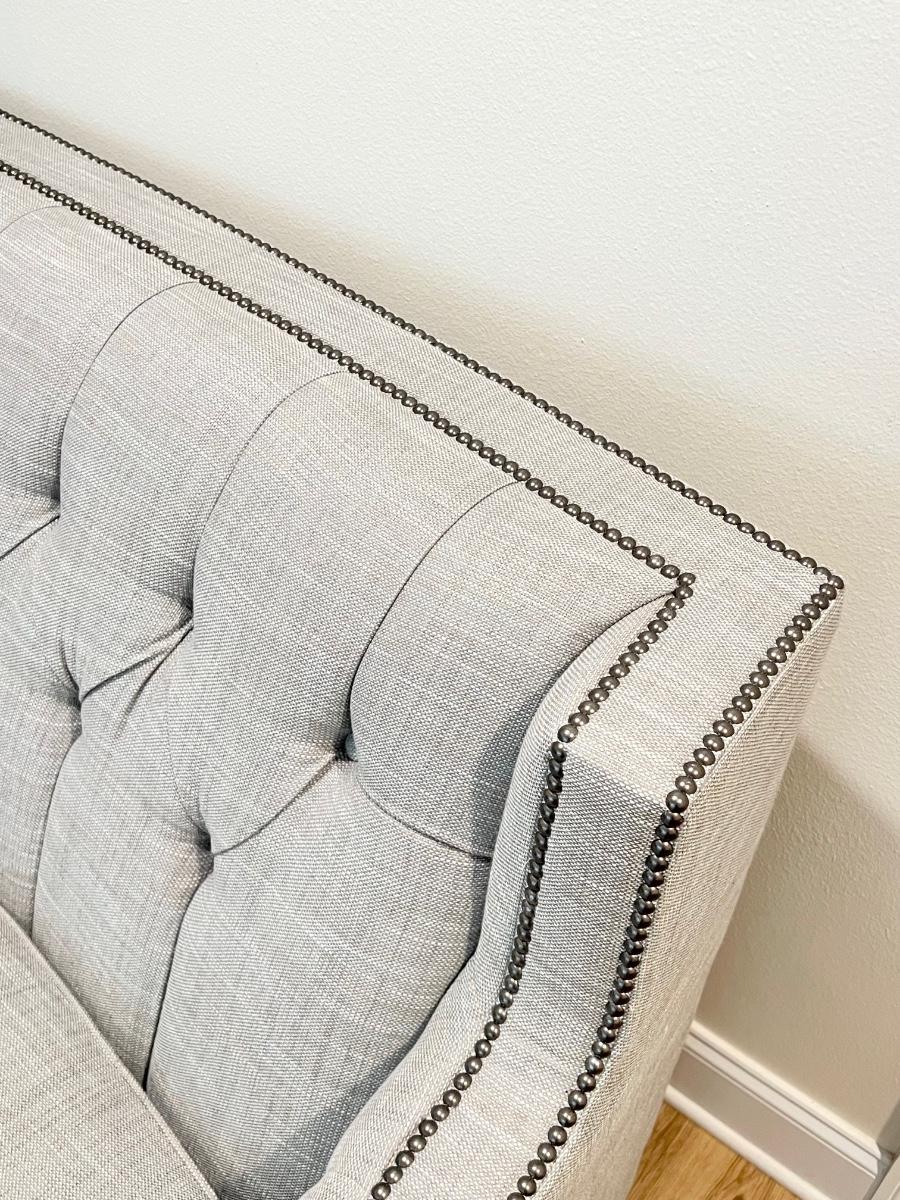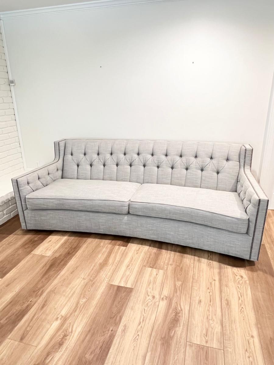 Blueish Gray In Color ~ Tufted & Nailhead Lined ~ Purchased at American Factory Direct ~ 34” H x 93” W x 45” D