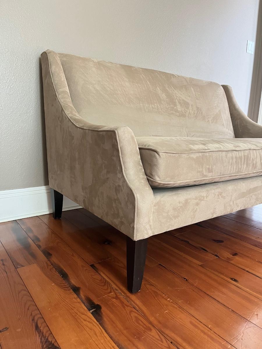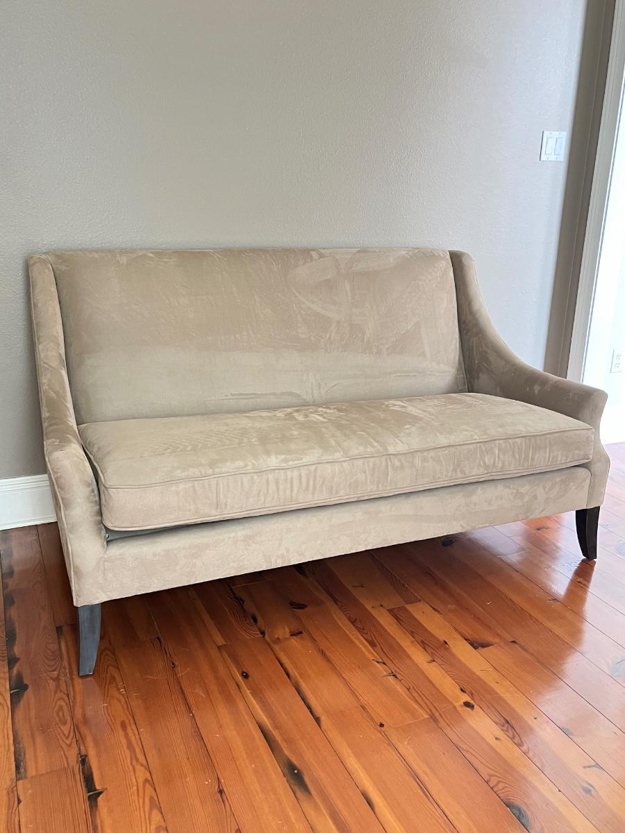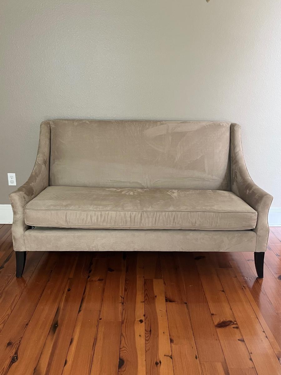BERNHARDT FURNITURE ~ Designer Taupe Suede Like Upholstered Sofa